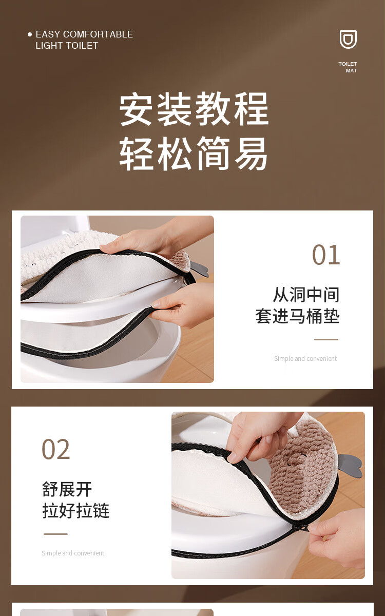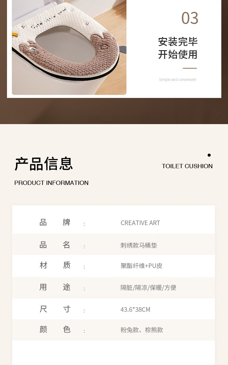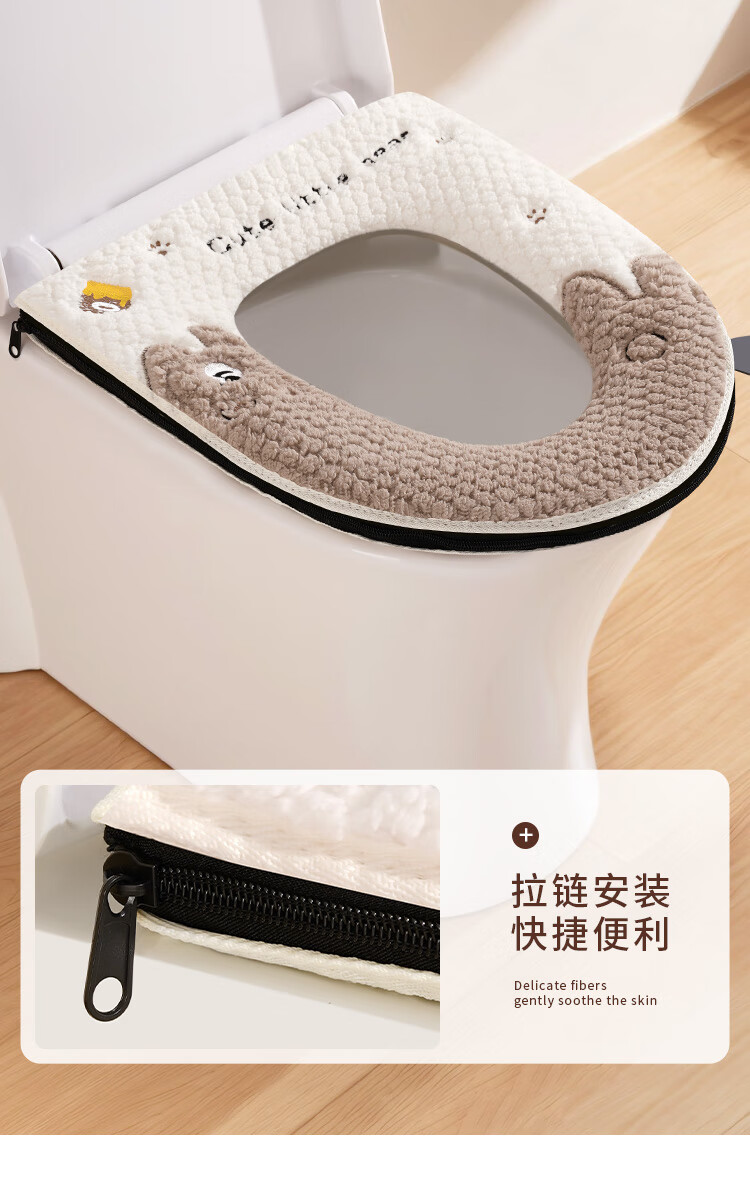 Creative art马桶垫秋冬保暖加厚加绒垫圈可水洗马桶圈垫冬天坐便套拉链款通用