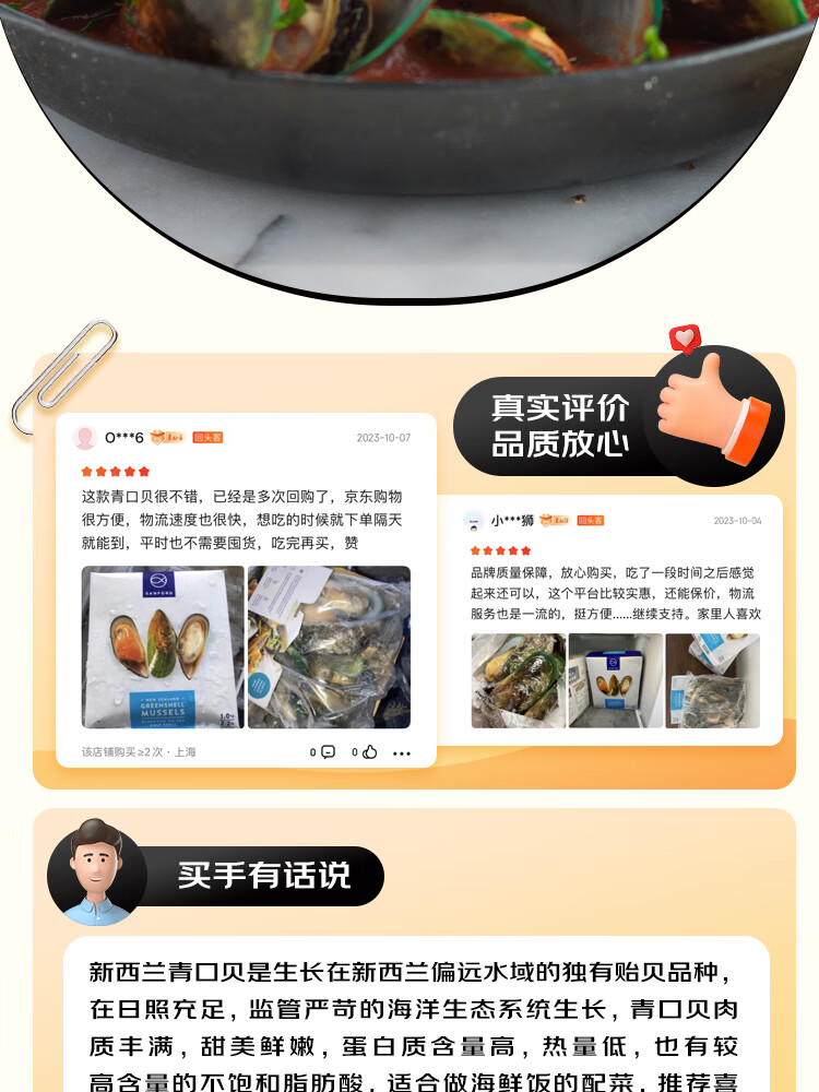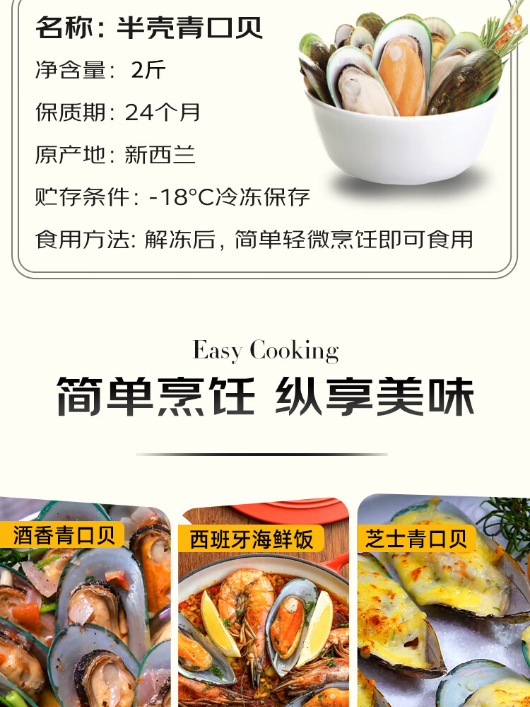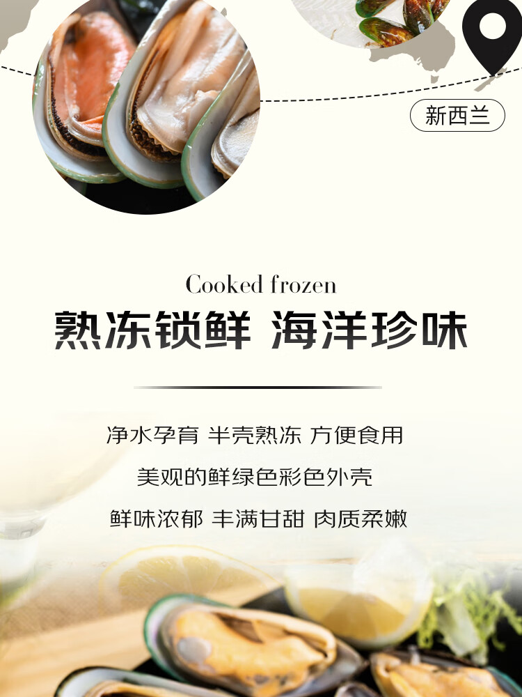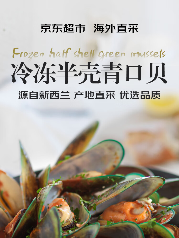 京东超市 海外直采新西兰青口贝(半壳熟冻)2斤 30-44只 火锅食材涮锅海鲜