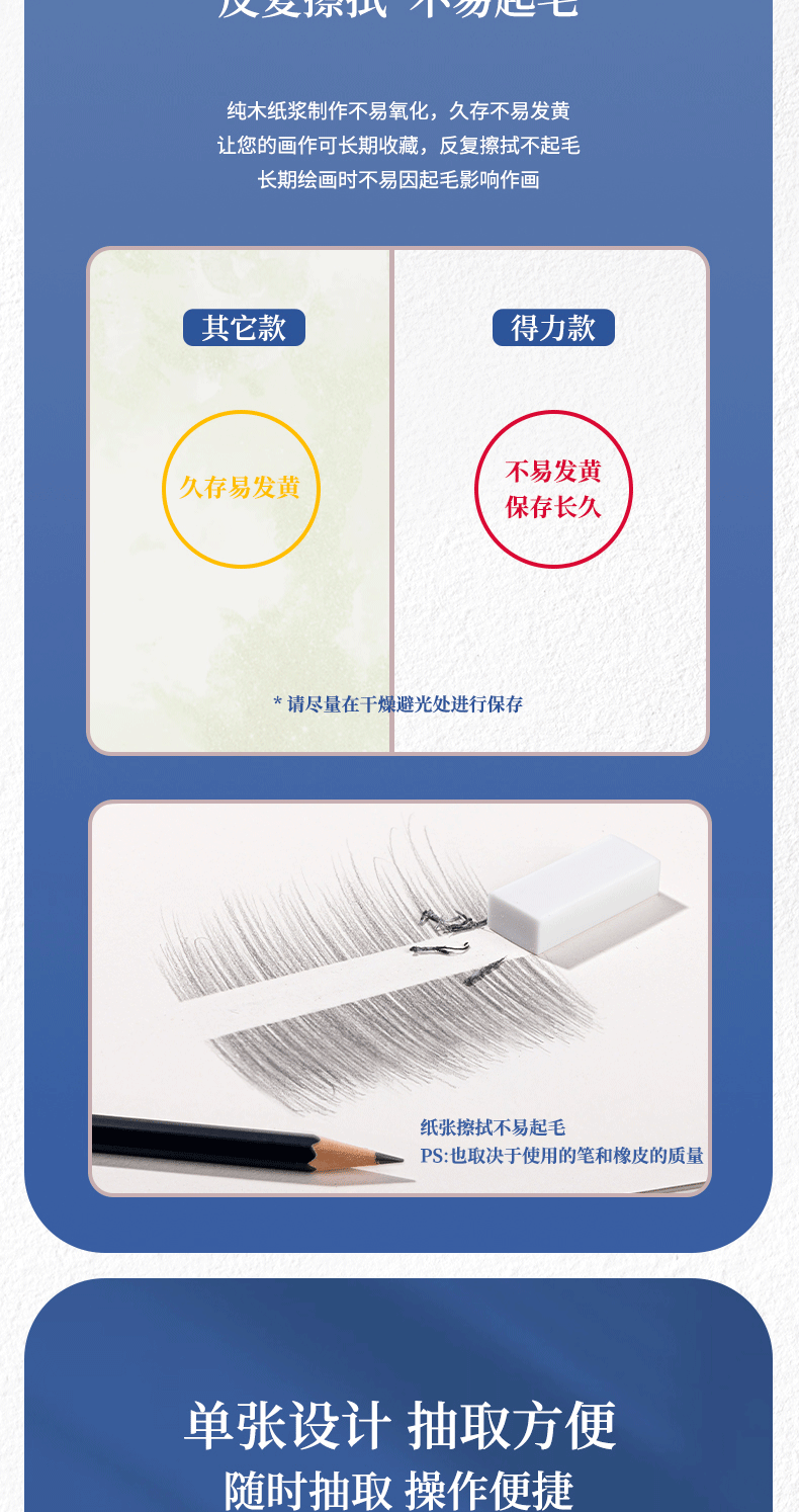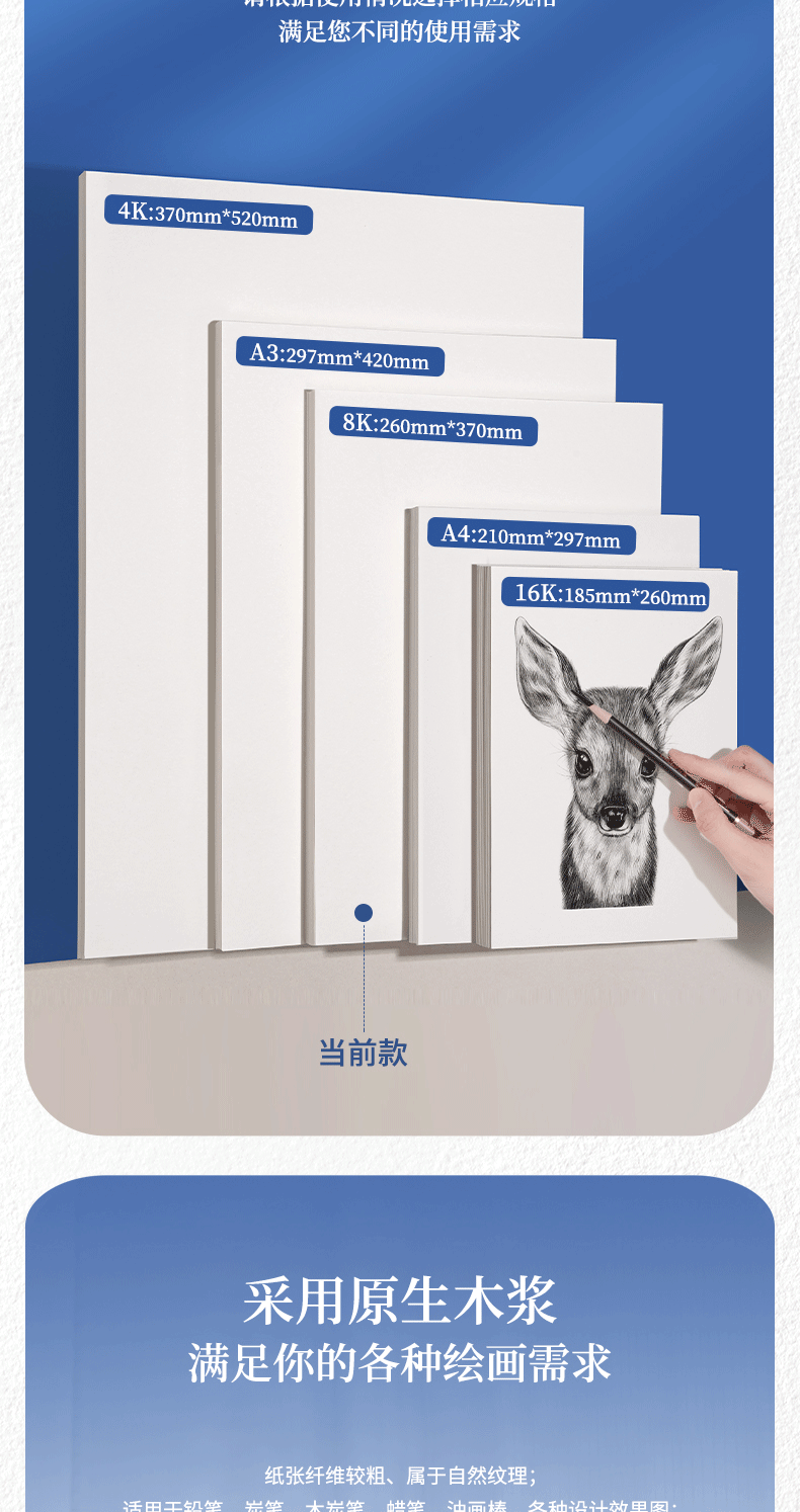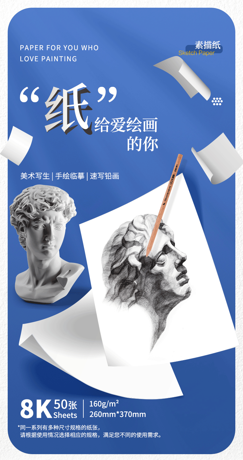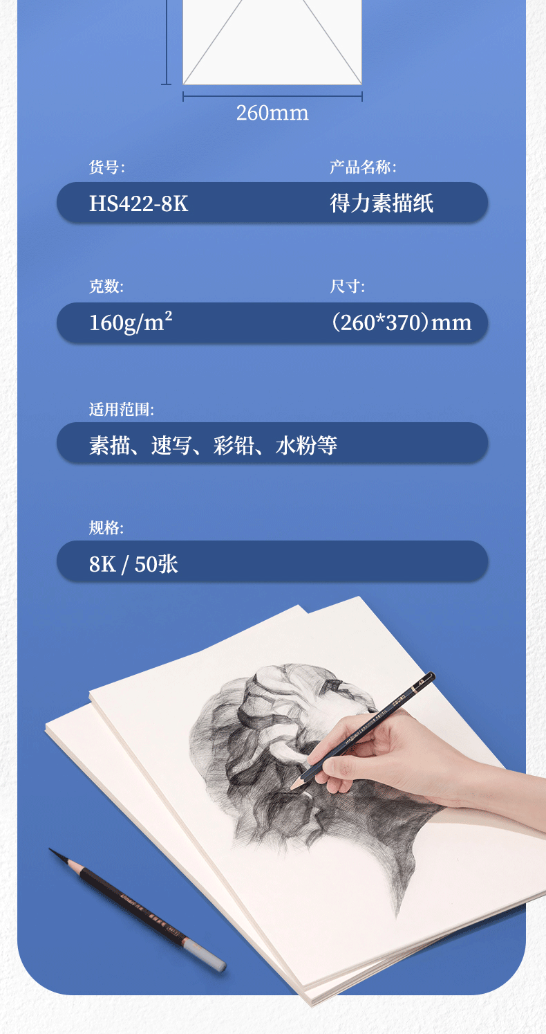 得力(deli)素描纸160g-8K-50张(袋)手绘临摹学生用初学者铅画纸绘画涂鸦美院