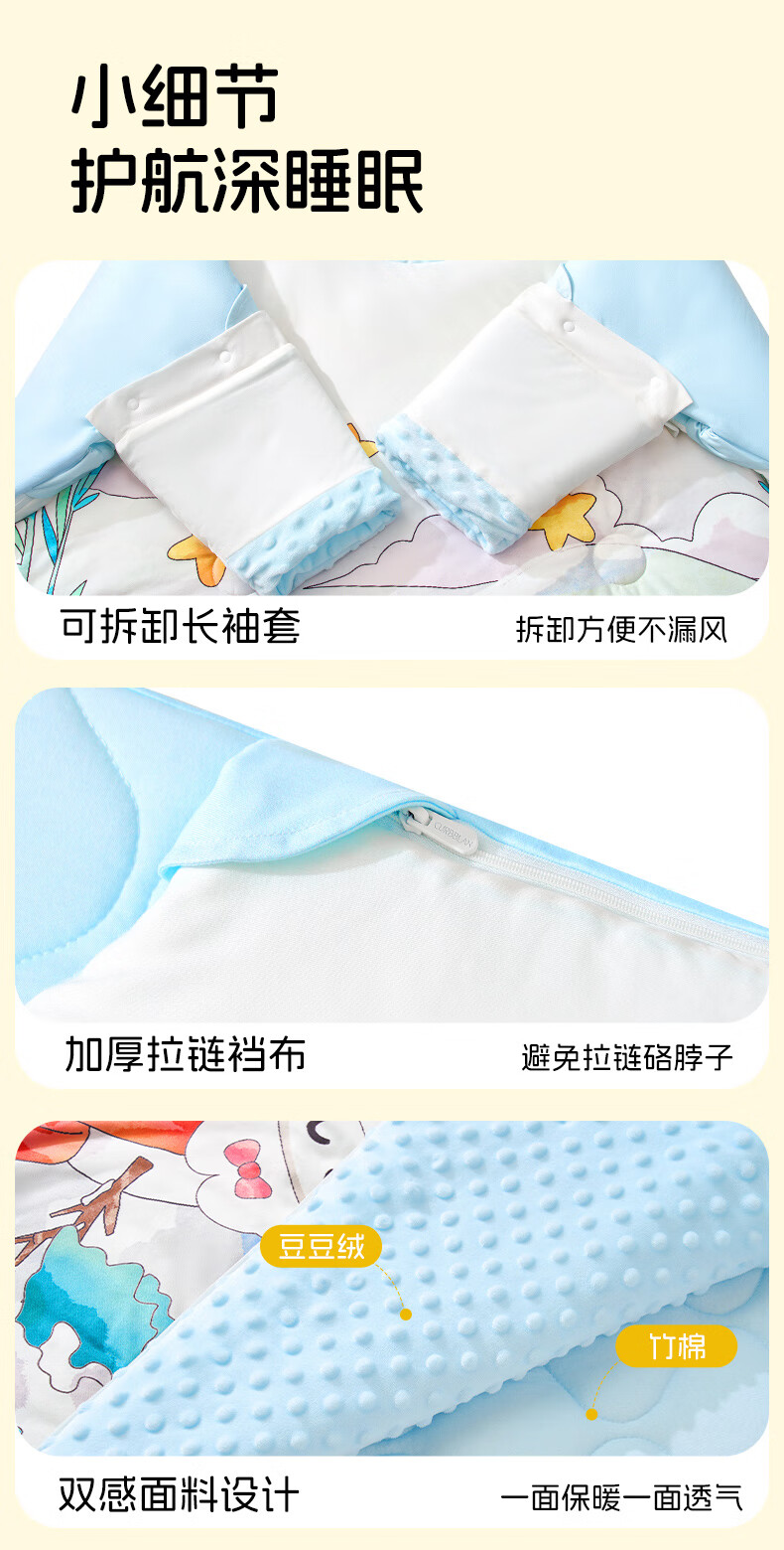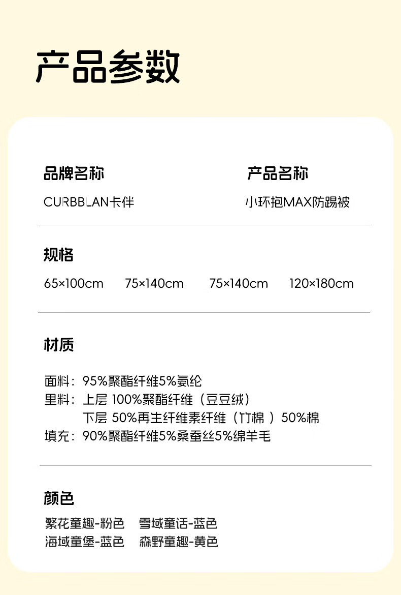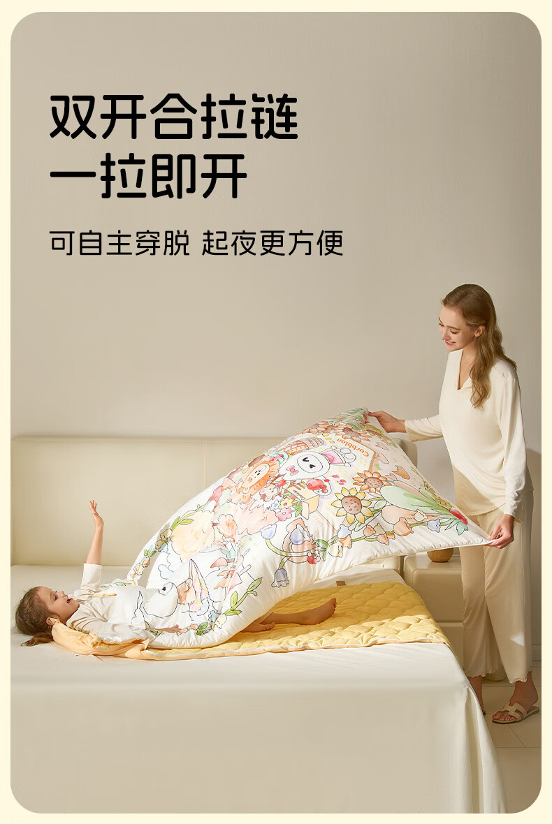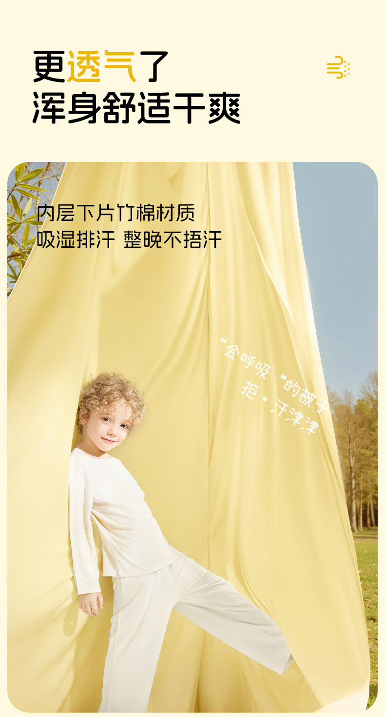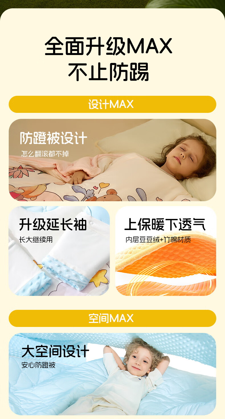 卡伴【吉娜同款】儿童防踢被冬加厚保暖蚕丝羊毛恒温睡袋 黄色 75*140