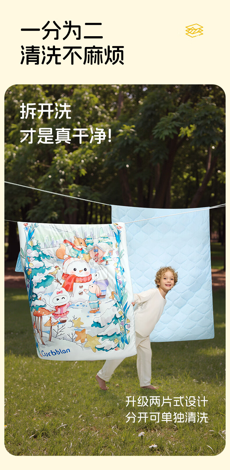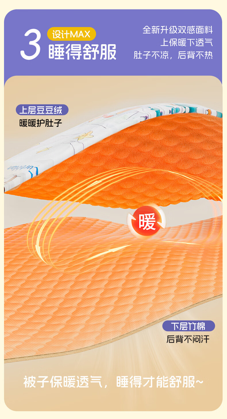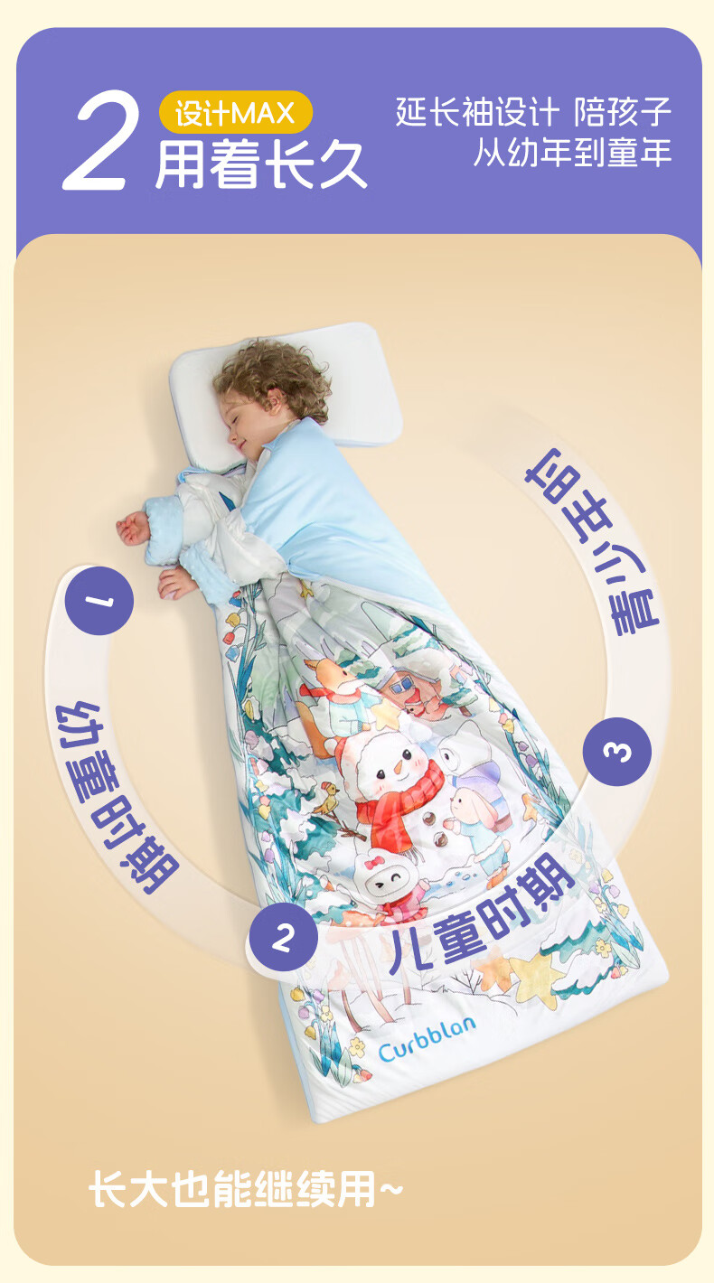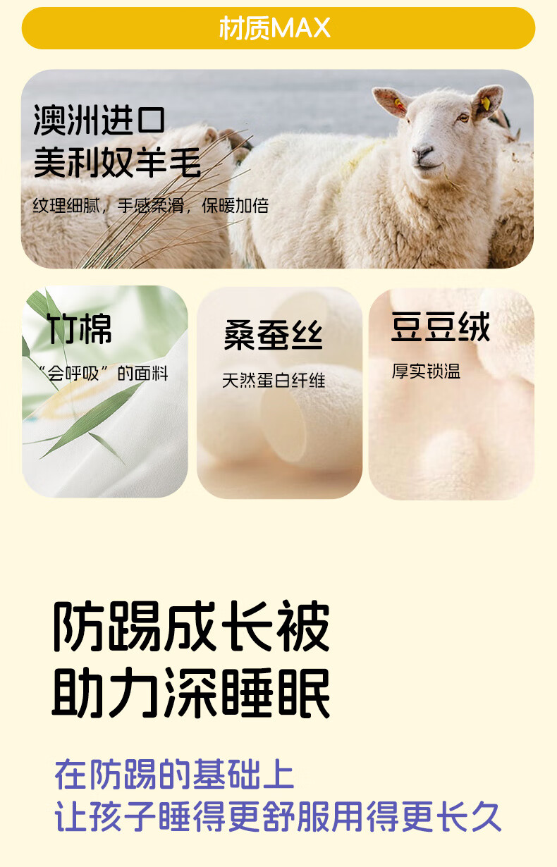 卡伴【吉娜同款】儿童防踢被冬加厚保暖蚕丝羊毛恒温睡袋 黄色 75*140