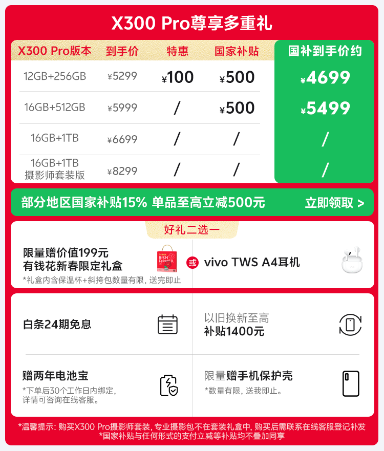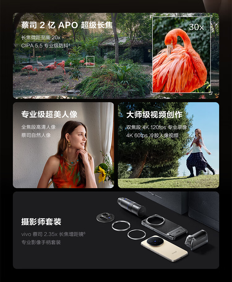 vivo X300 Pro 蔡司2亿APO超级长焦 蓝图自研影像双芯 5年持久流畅OriginOS 6 直屏拍照手机 新品 国补 简单白 16GB+512GB 官方标配