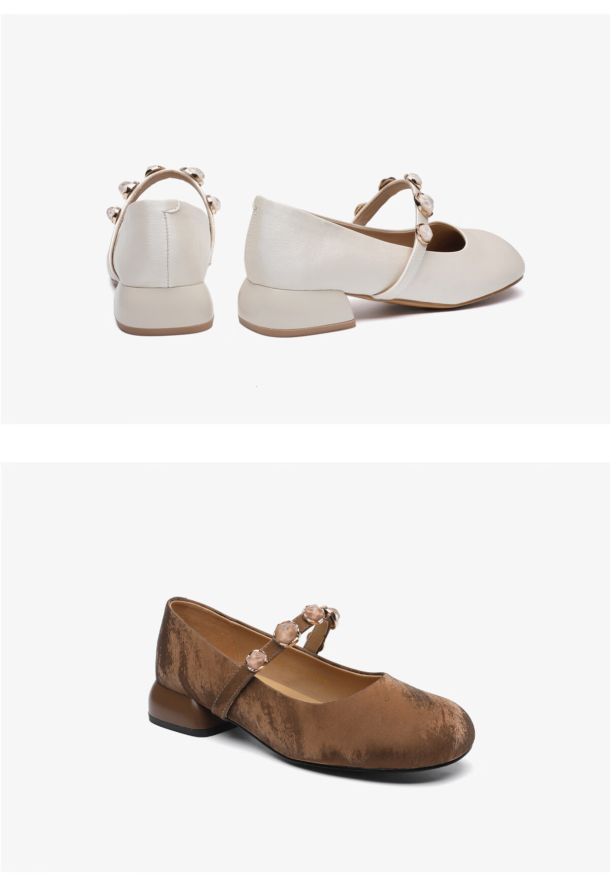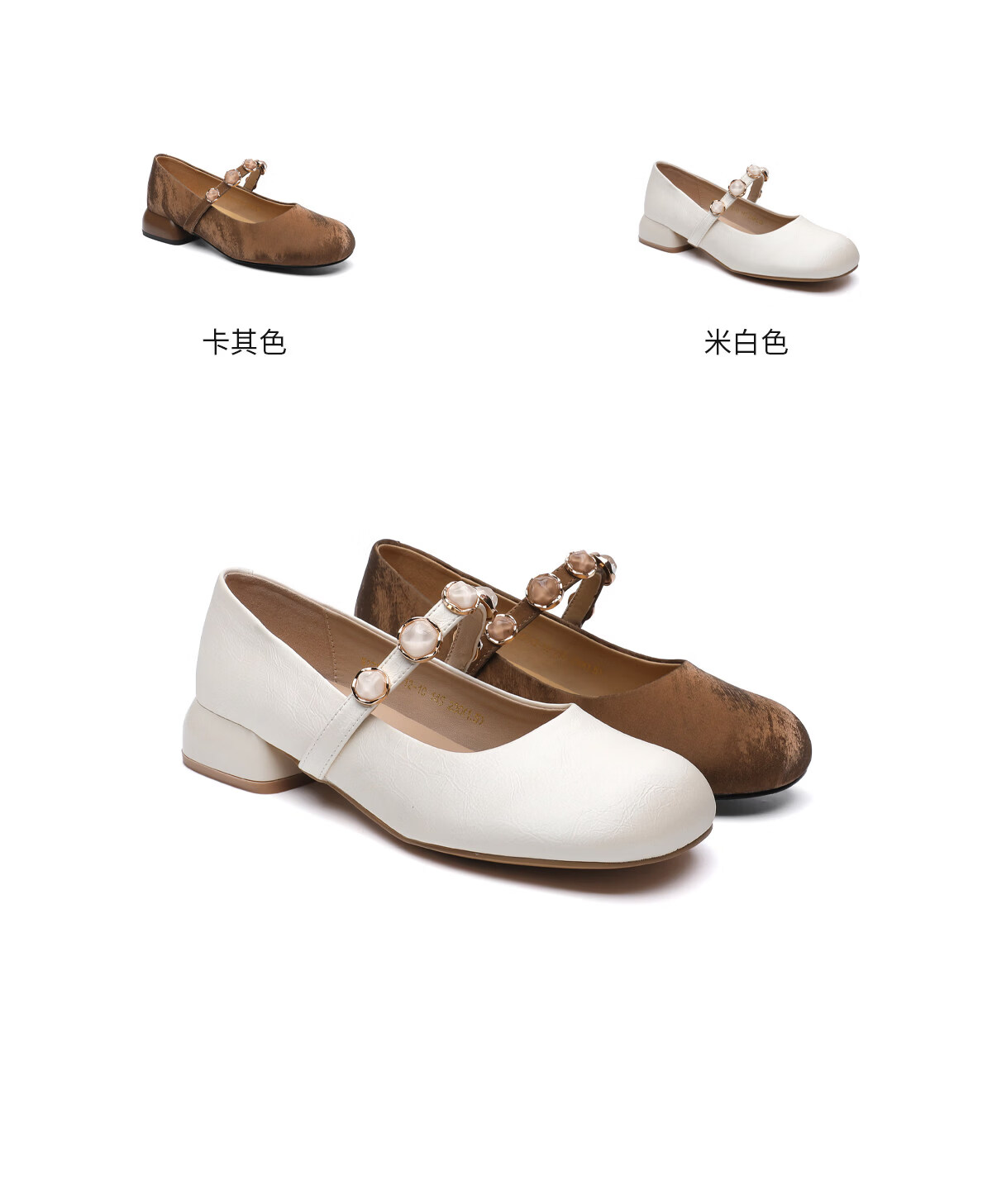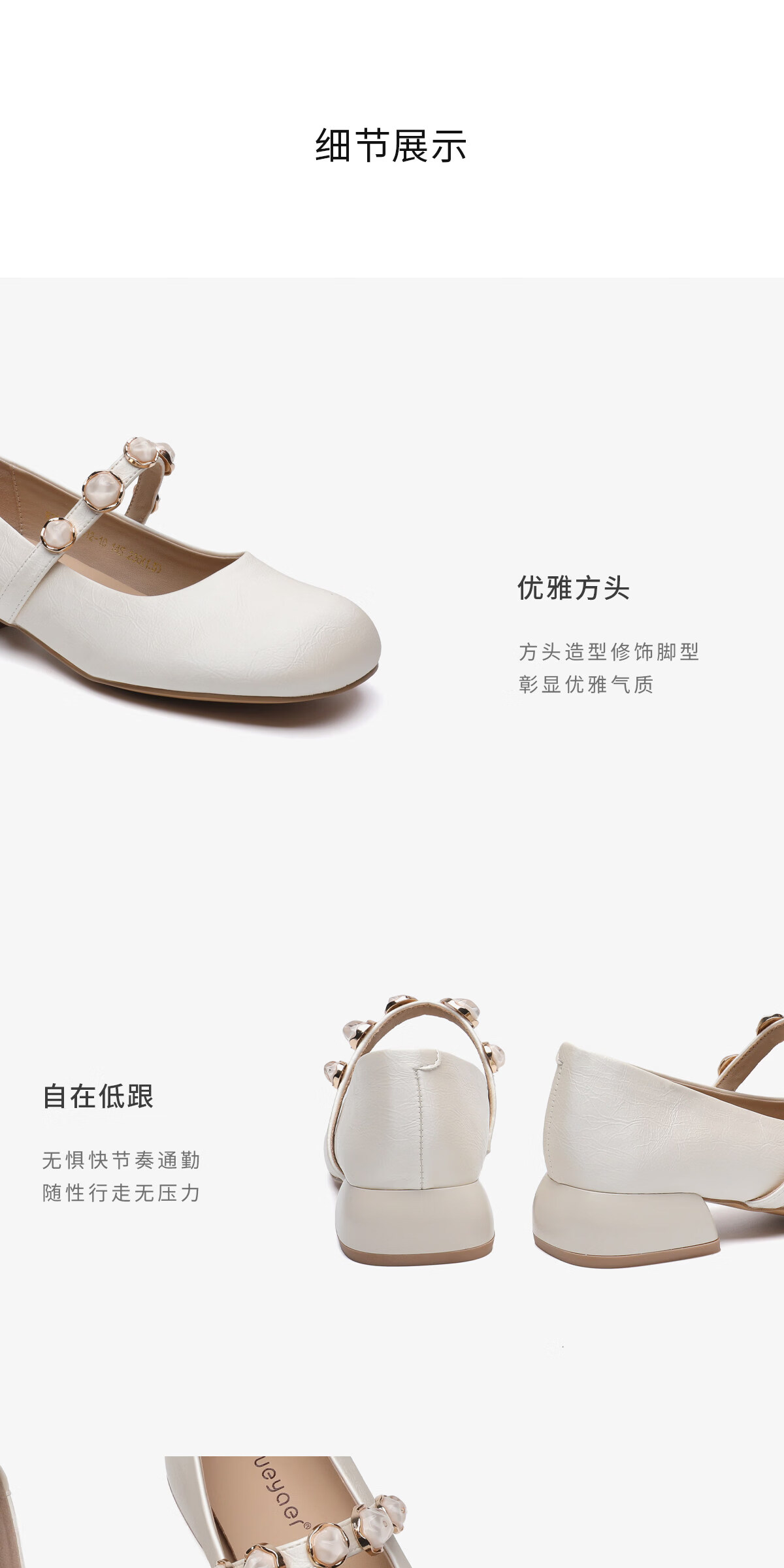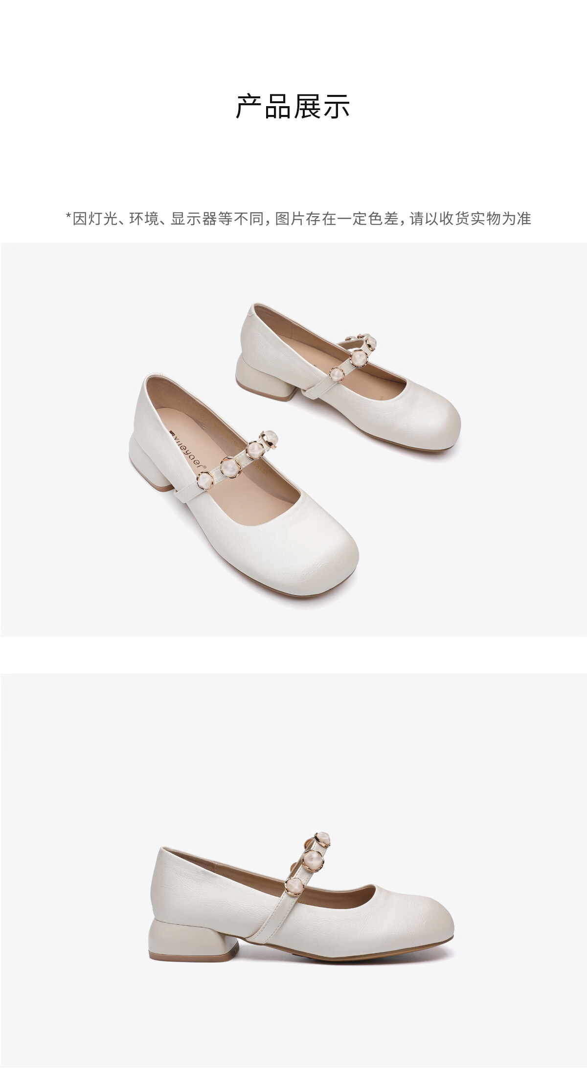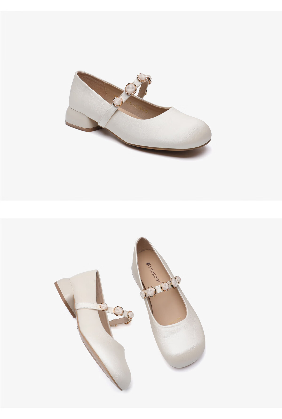 月芽儿2025新款玛丽珍鞋女浅口珍珠装饰气质法式复古单鞋 米白色14S 34