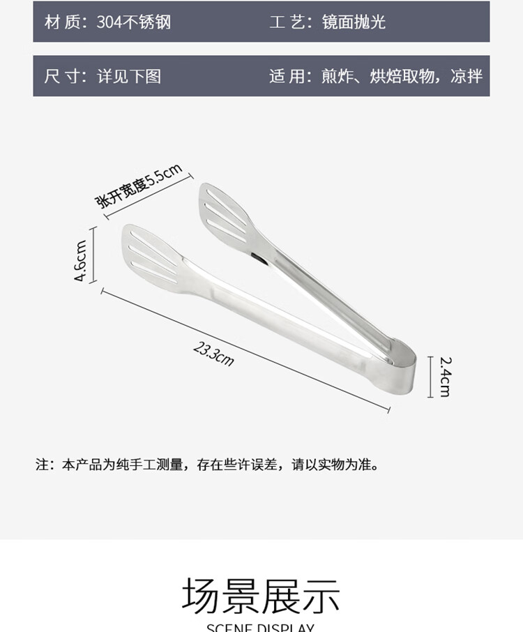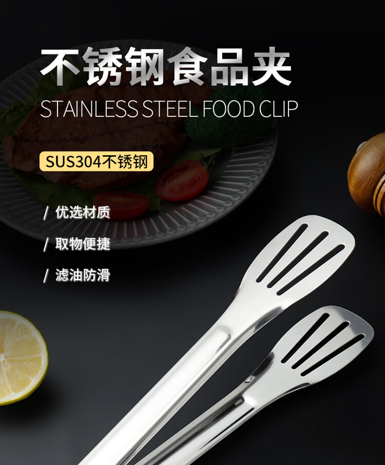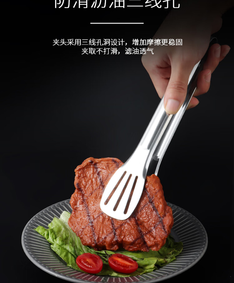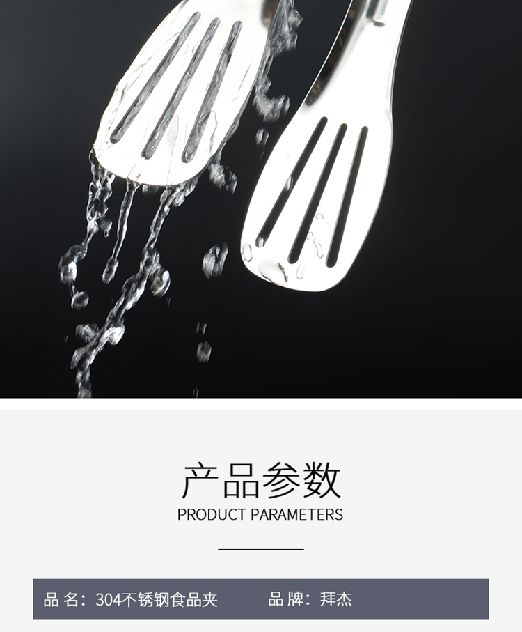 拜杰304多功能食品夹蛋糕夹牛排夹烧烤面包夹厨房烘焙夹子烤肉夹子