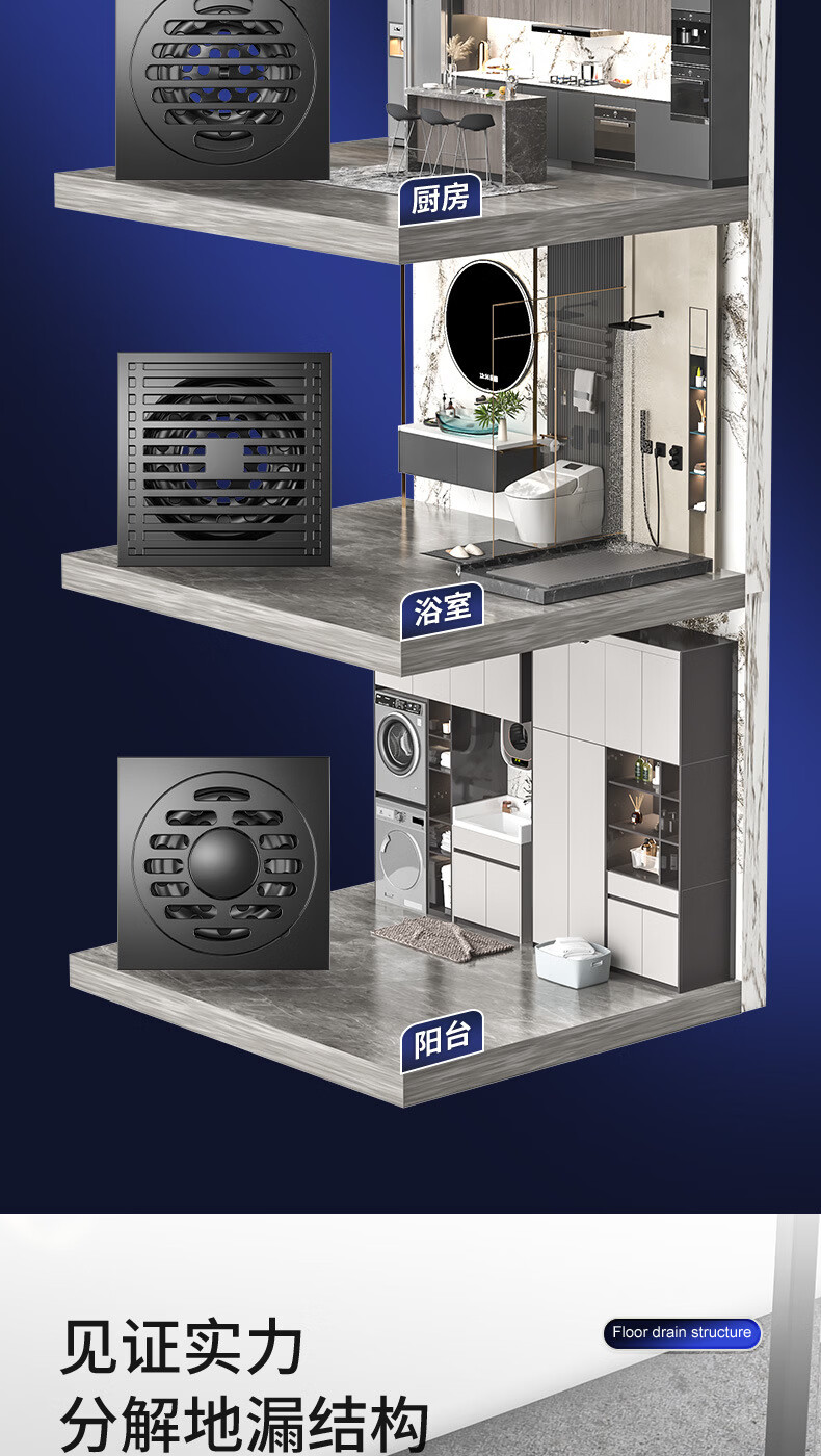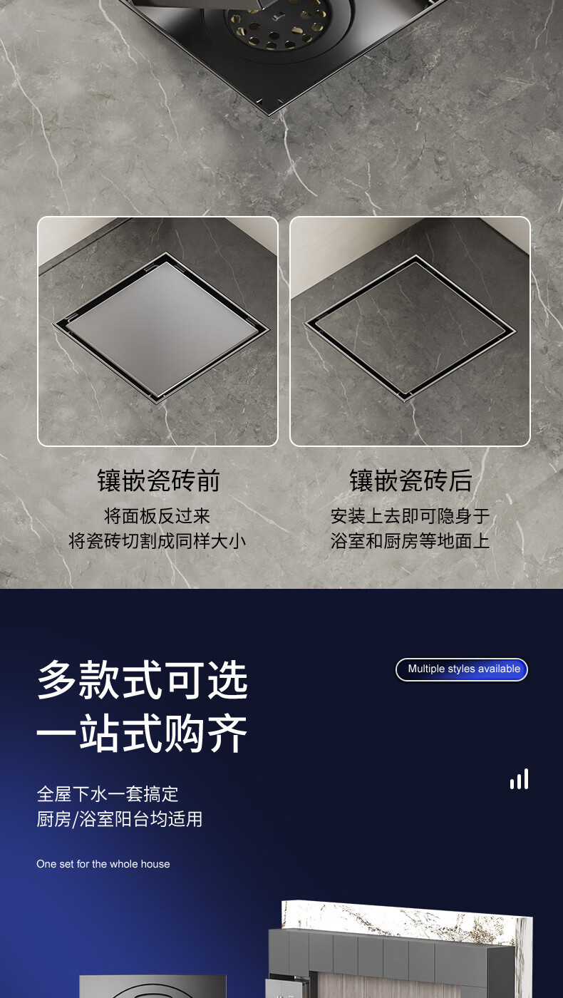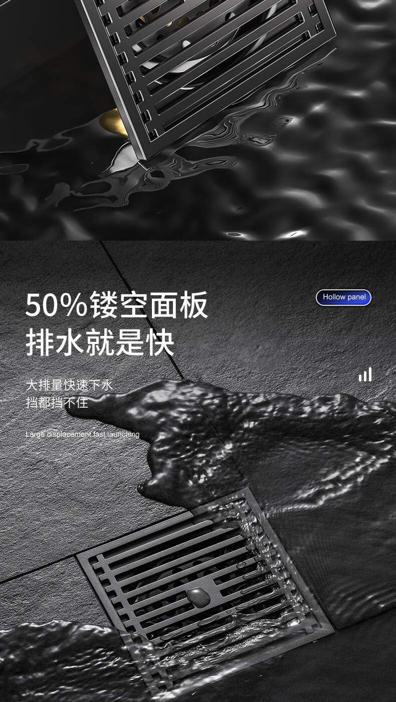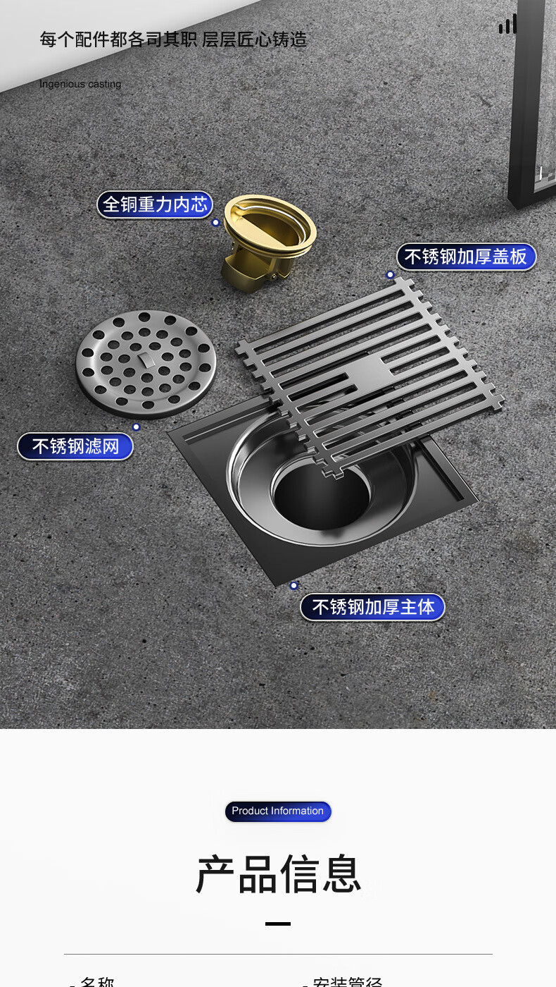 九牧(JOMOO)官方旗舰全铜防臭隐形地漏枪灰色厨房卫生间下水道通用洗衣机地漏 大隐藏【铜芯】枪灰色