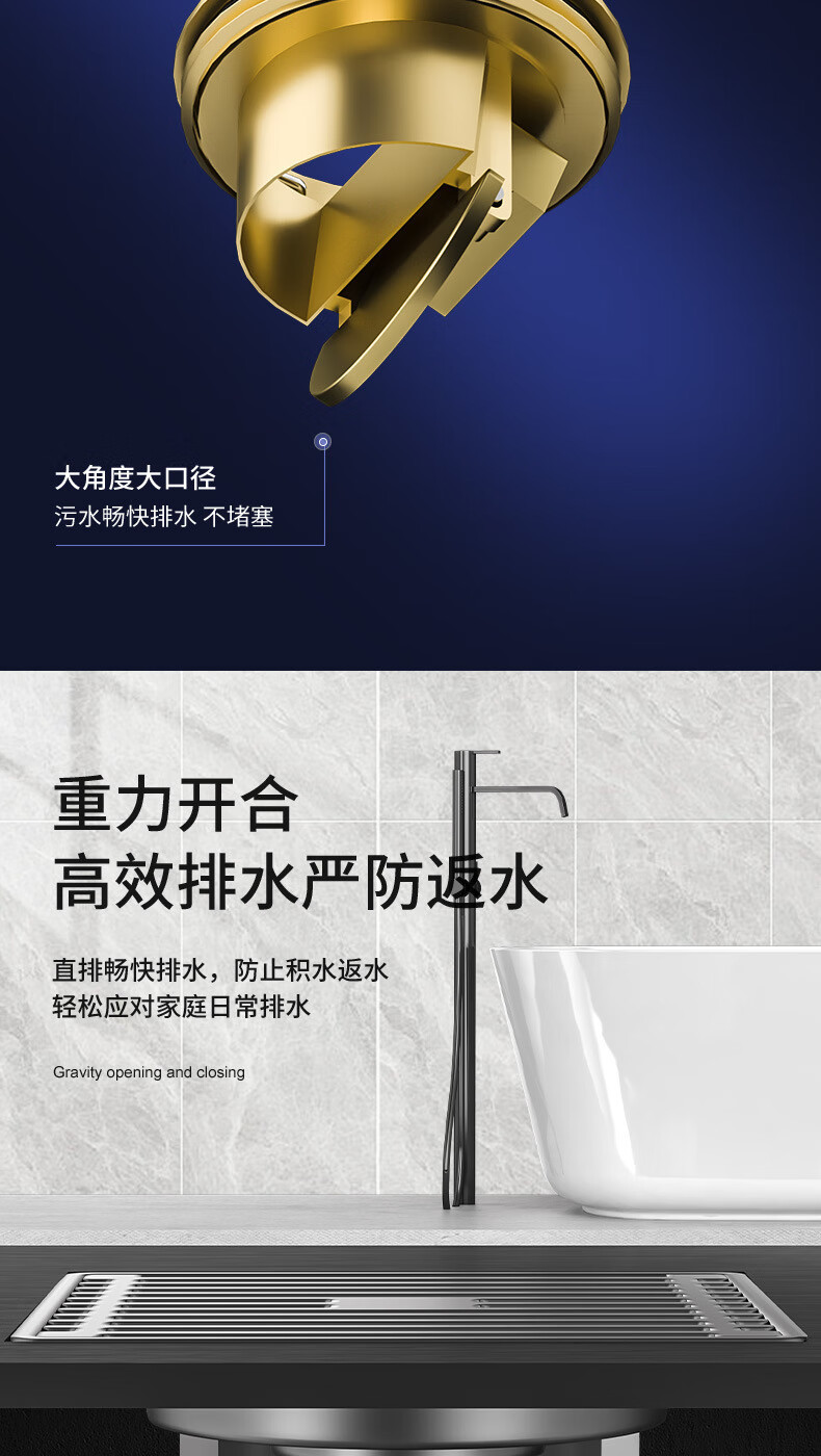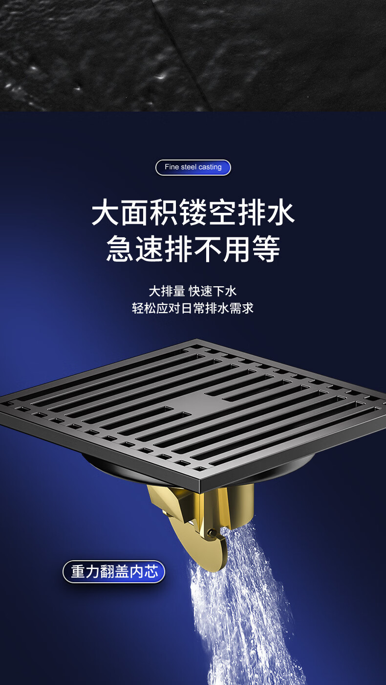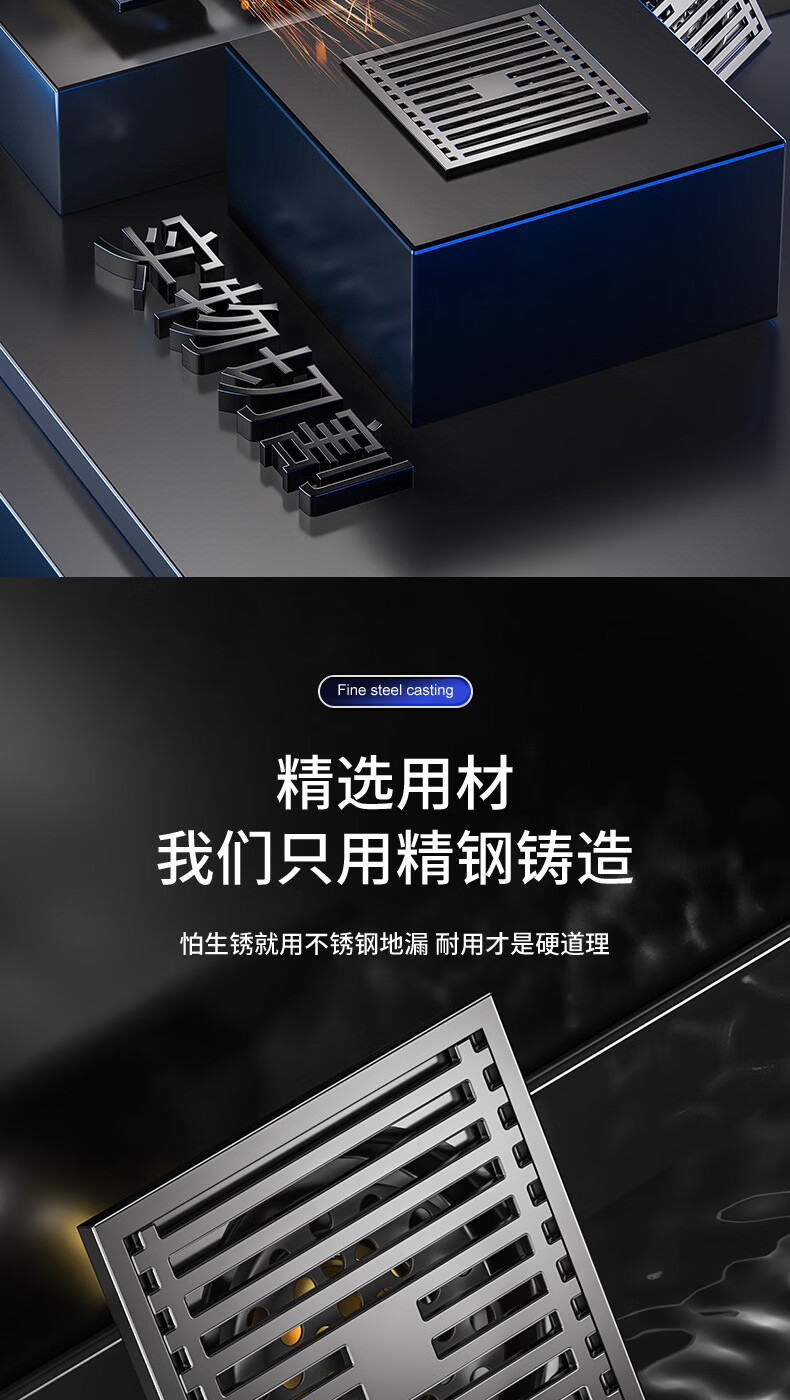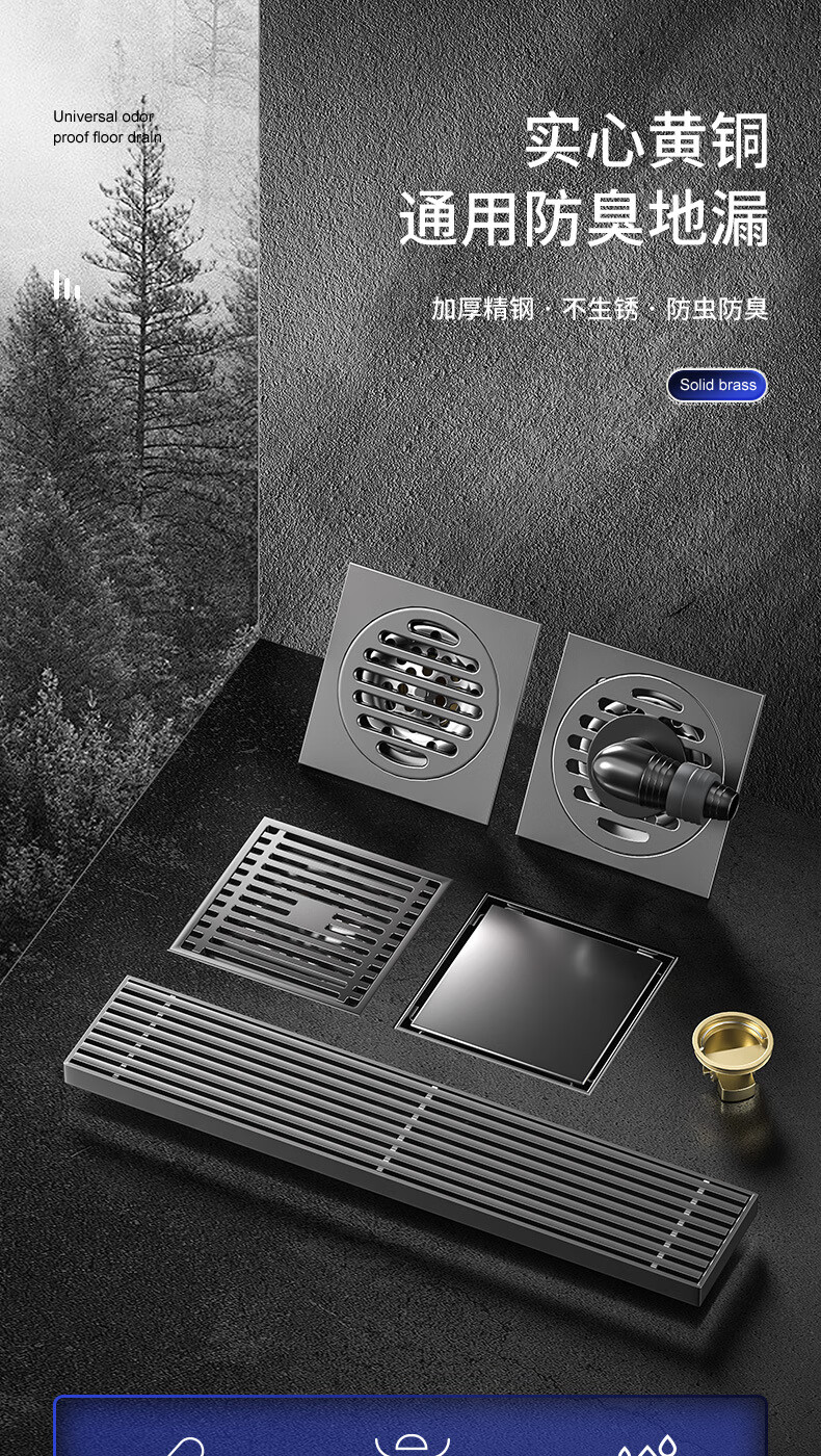 九牧(JOMOO)官方旗舰全铜防臭隐形地漏枪灰色厨房卫生间下水道通用洗衣机地漏 大隐藏【铜芯】枪灰色