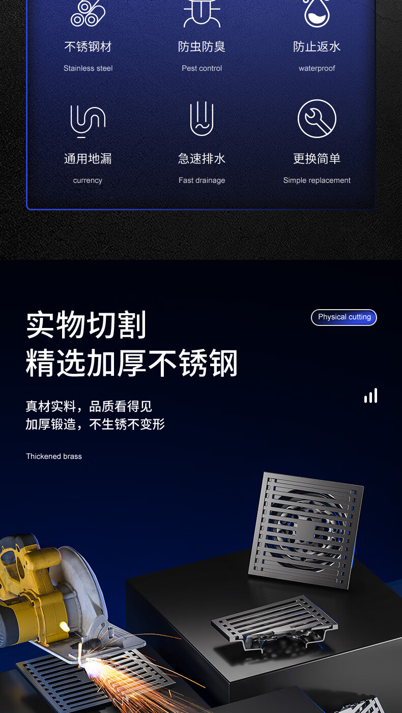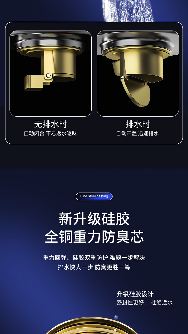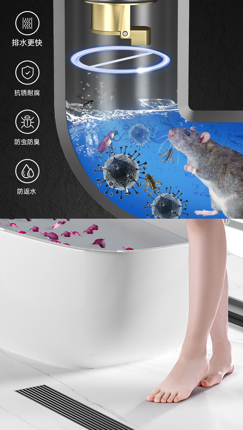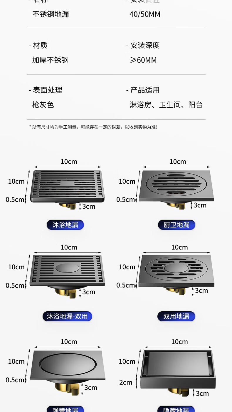 九牧(JOMOO)官方旗舰全铜防臭隐形地漏枪灰色厨房卫生间下水道通用洗衣机地漏 大隐藏【铜芯】枪灰色