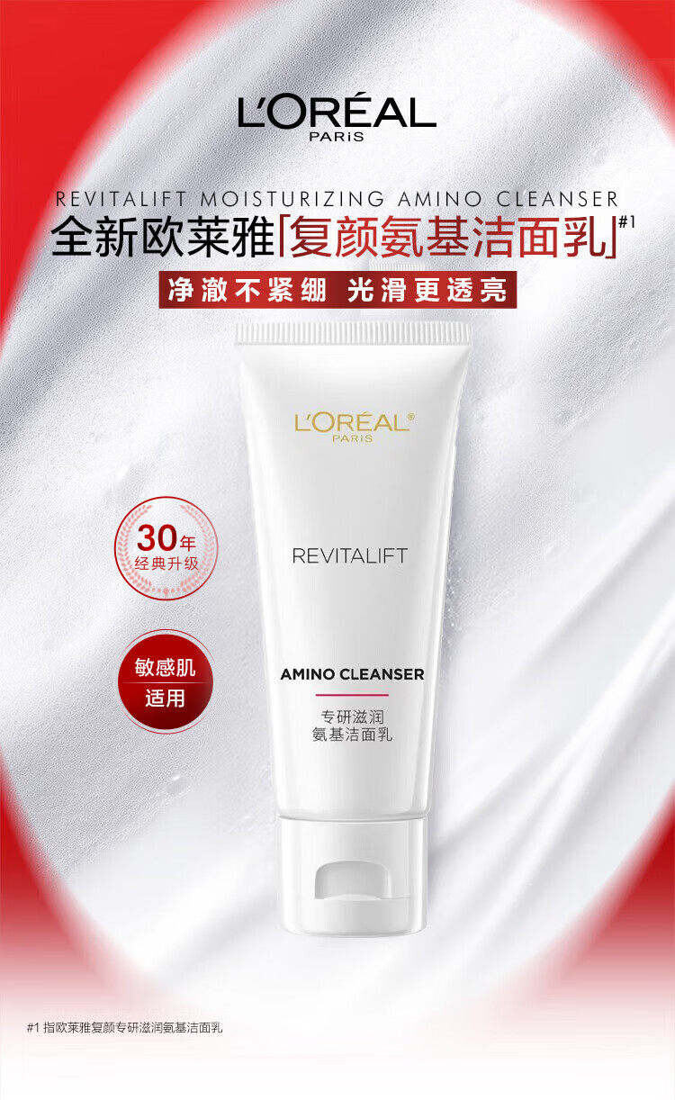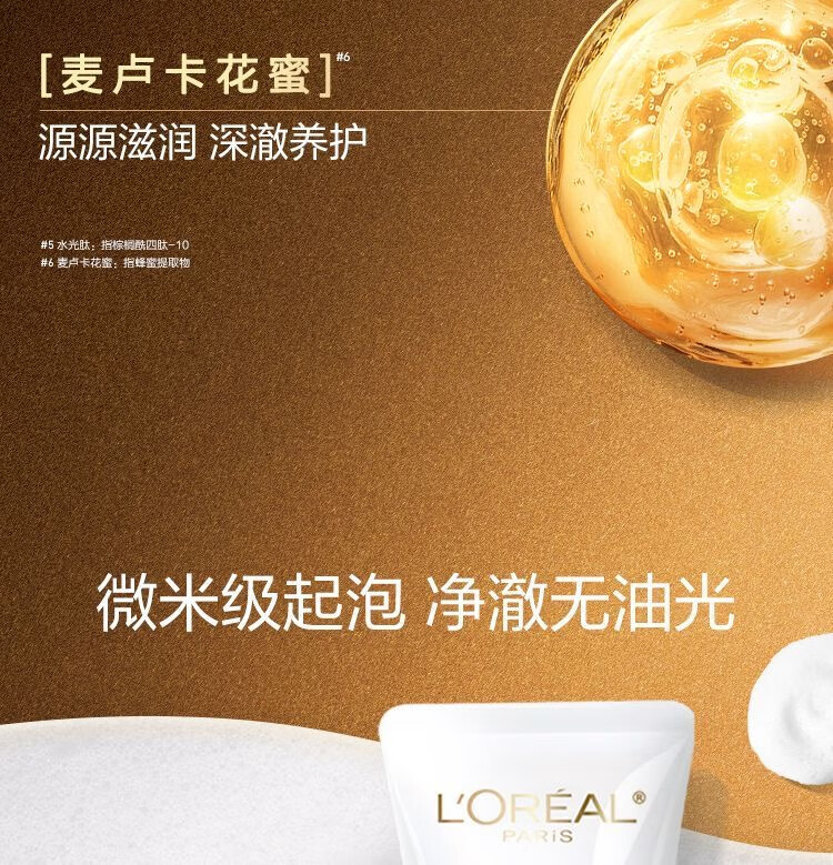 欧莱雅(LOREAL)洗面奶30ml洁面乳氨基酸温和深层清洁滋润便携装 花蜜洁面乳30ml*4