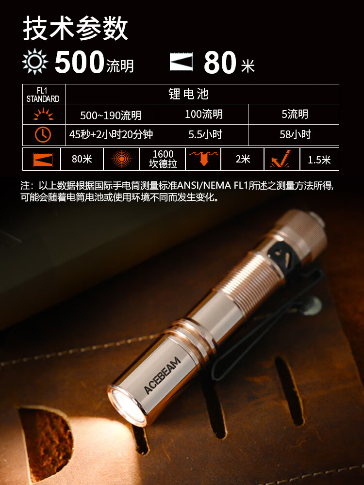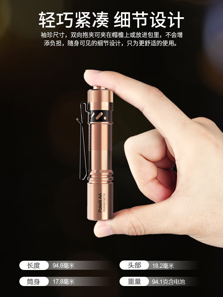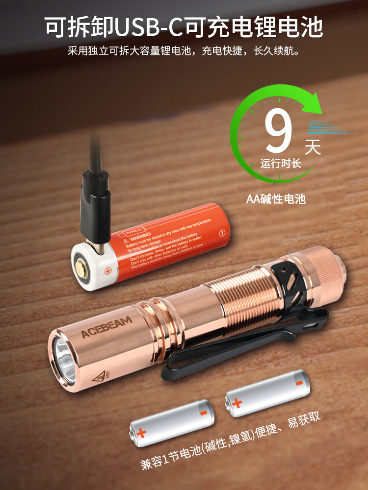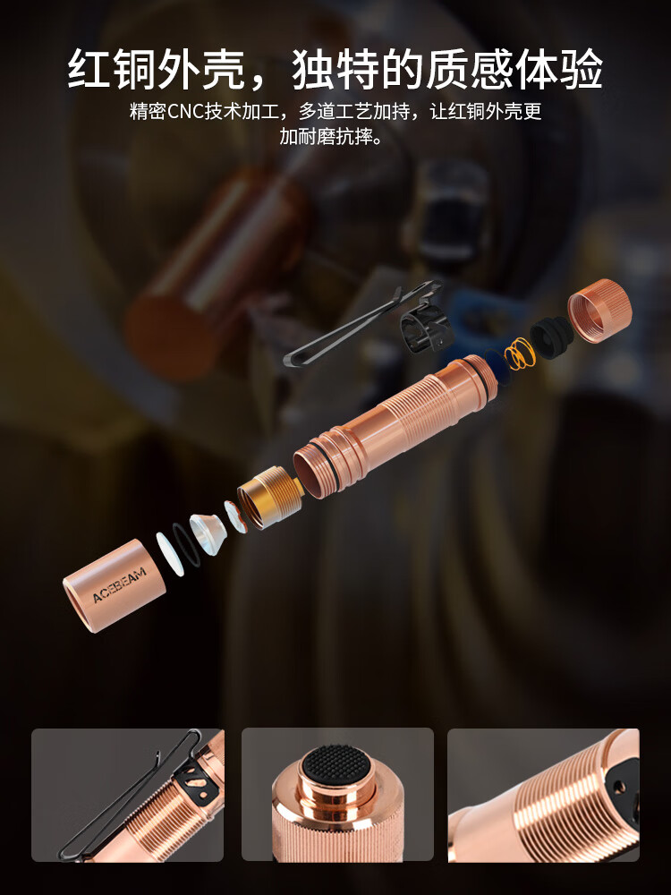 ACEBEAM PAA手电筒强光充电EDC便携户外防水LED超亮远射徒步露营登山夜爬 【特别版】PAA 红铜版本【真空保护膜拆除不予退换】