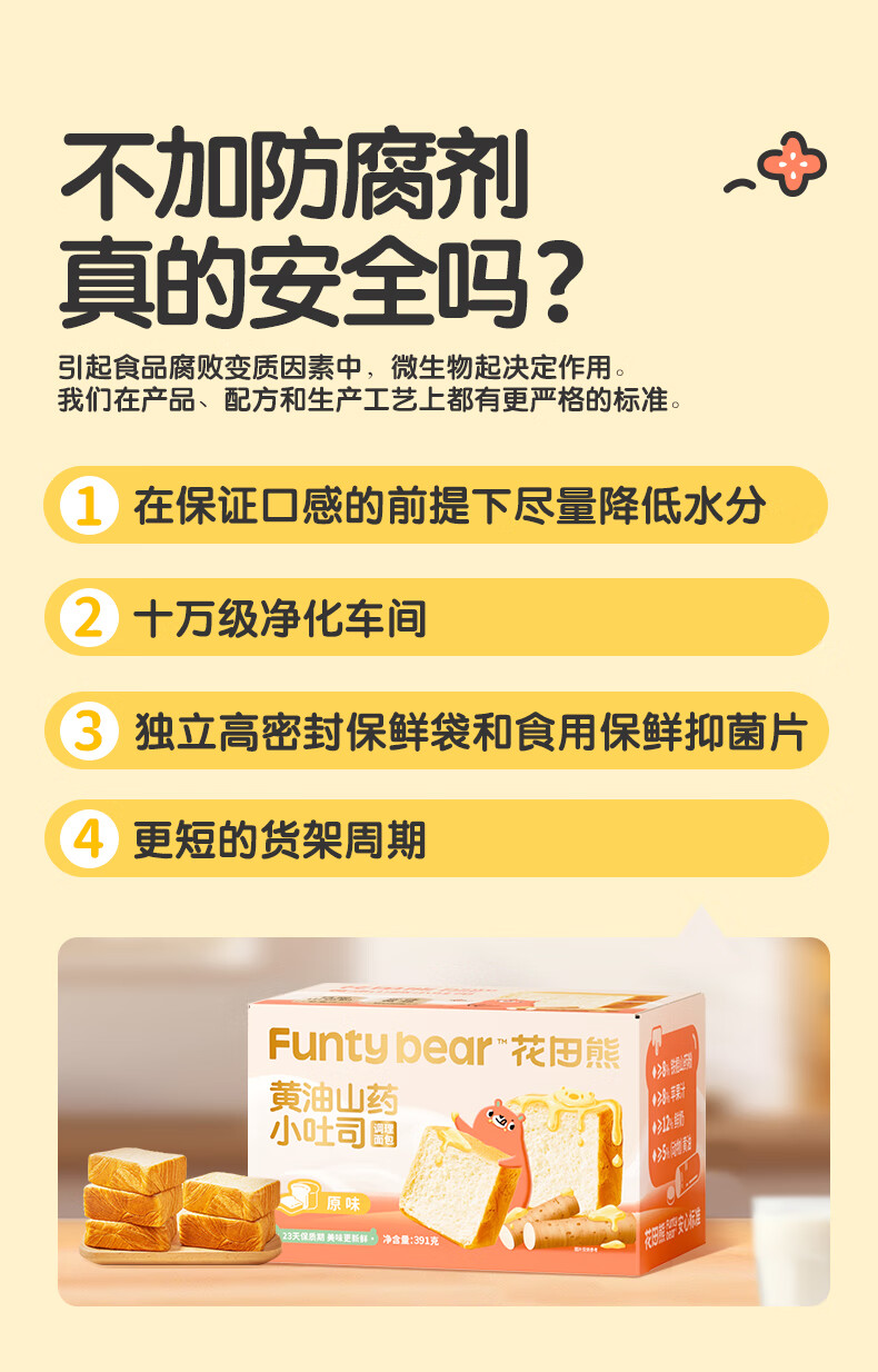花田熊黄油山药小吐司面包儿童营养健康学生早餐食品零食独立包装 【无防腐剂】山药小吐司391g*2箱