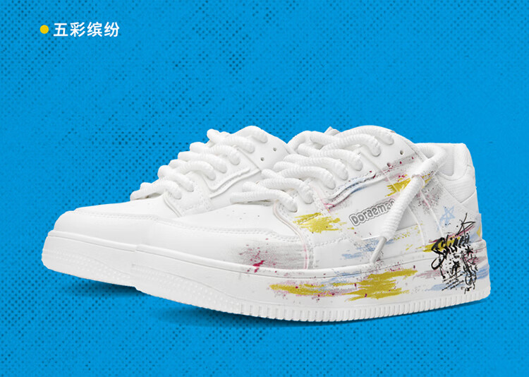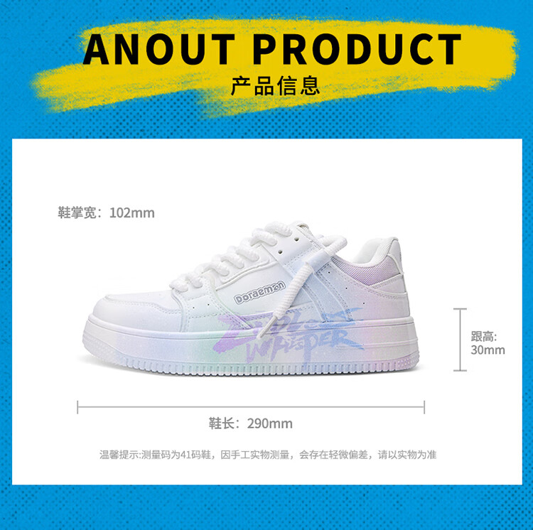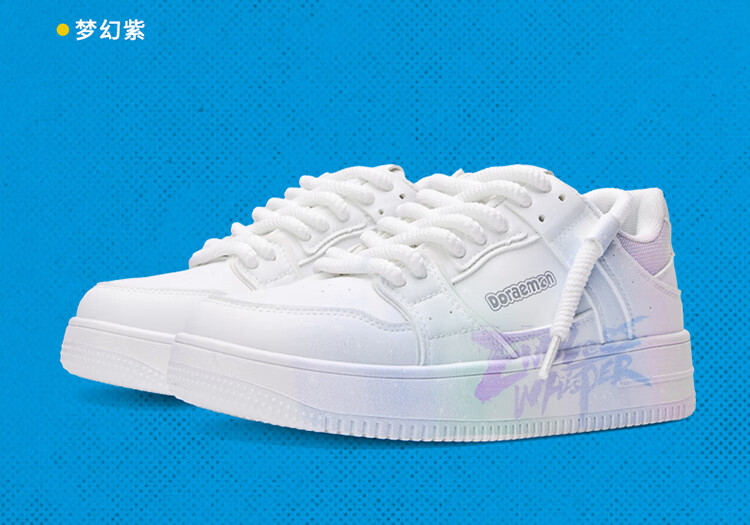 哆啦A梦板鞋男鞋冬季新款趣味涂鸦小白鞋厚底增高情侣款休闲鞋子男 复古白(梦幻紫) 44