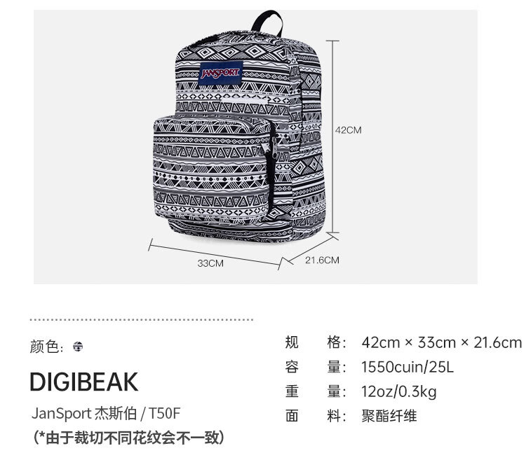 JANSPORT杰斯伯双肩包女男时尚休闲双肩包/裁切不一样花纹会不一致 T50F0GT黑白几何拼接-电脑隔层