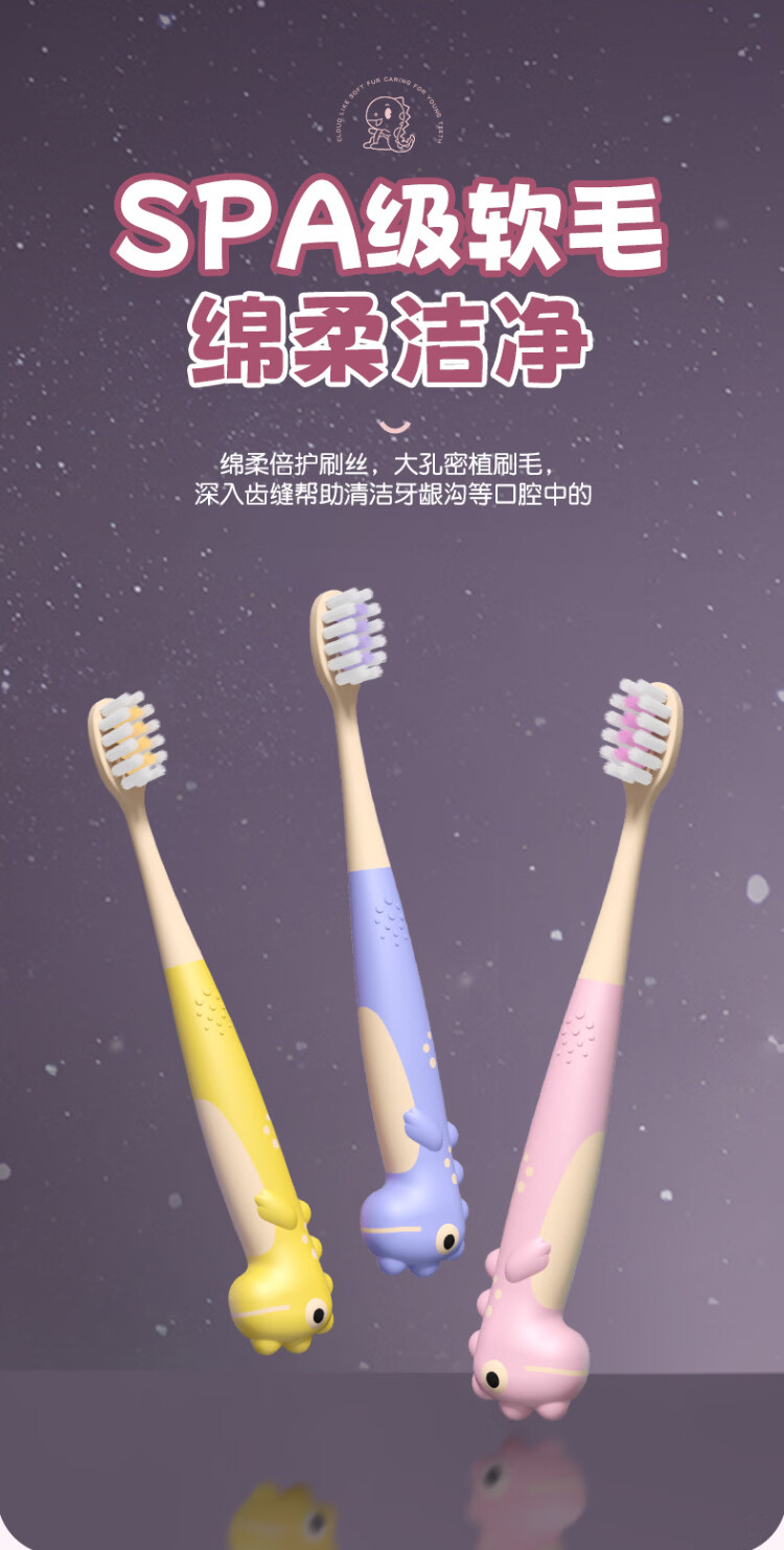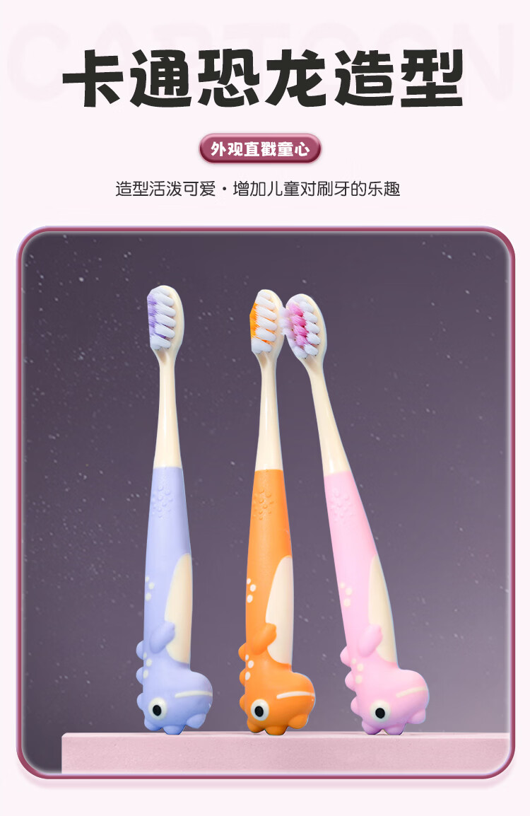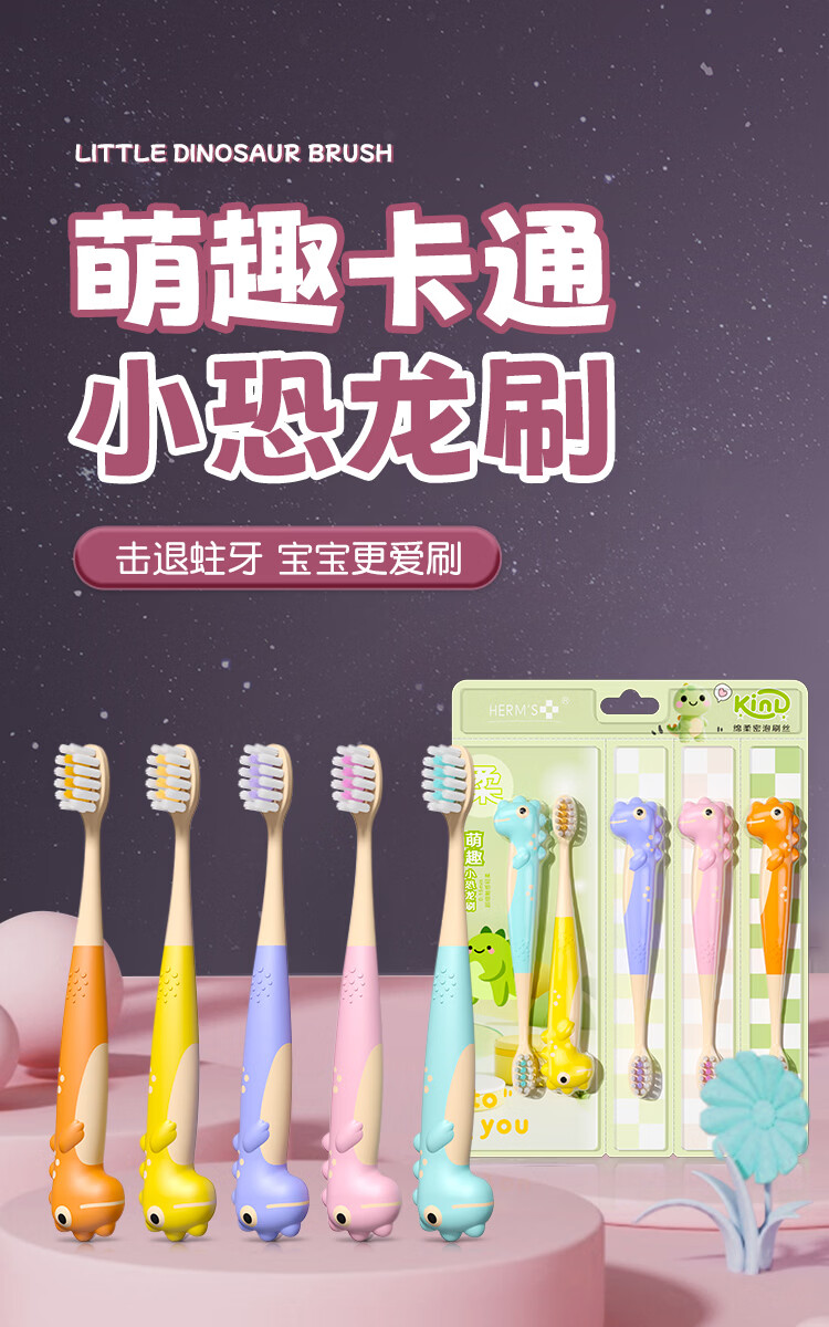 HERM'S恐龙儿童牙刷宝宝3-12岁换牙期护龈软毛清洁牙齿可爱创意童趣 恐龙儿童牙刷 5支