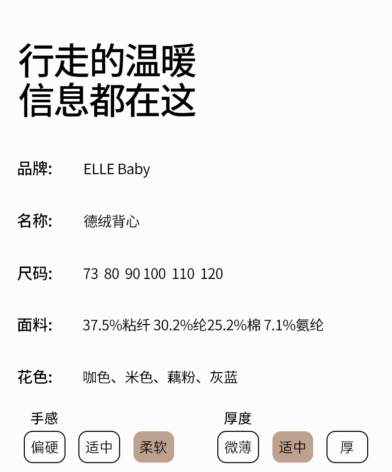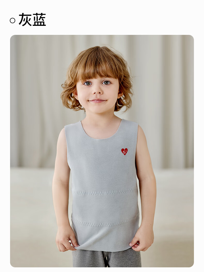 ELLE BABY婴幼童背心儿童打底衫德绒宝宝马甲保暖秋冬款无骨缝A类可机洗 灰蓝 120