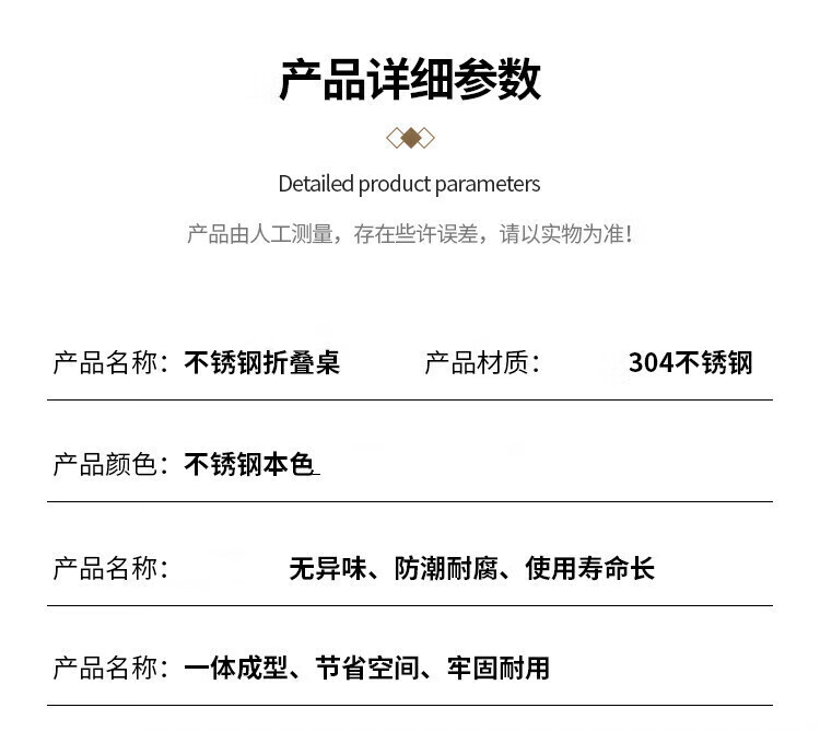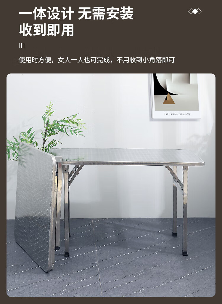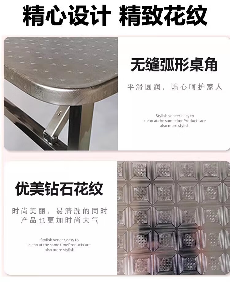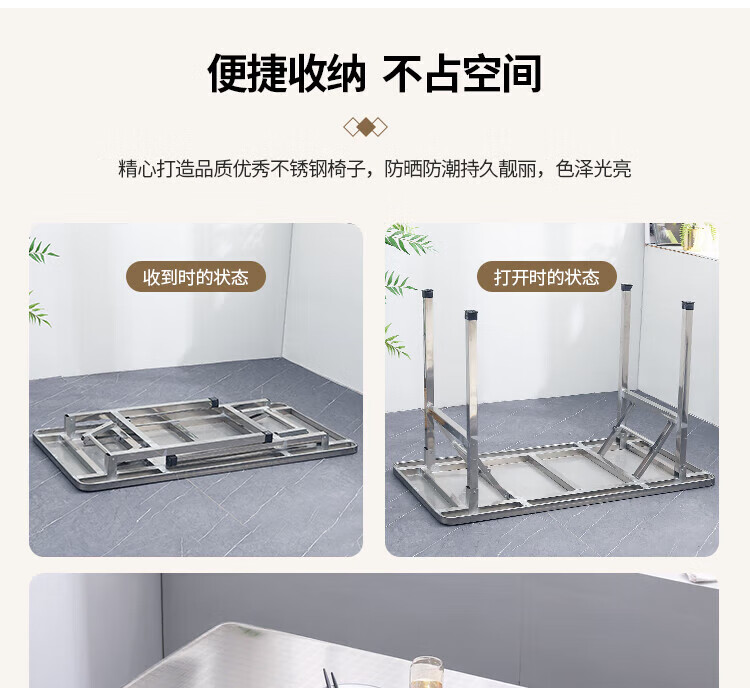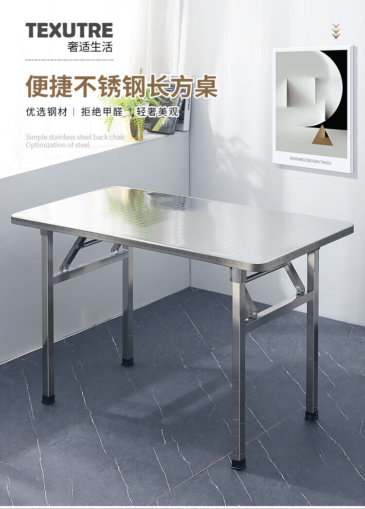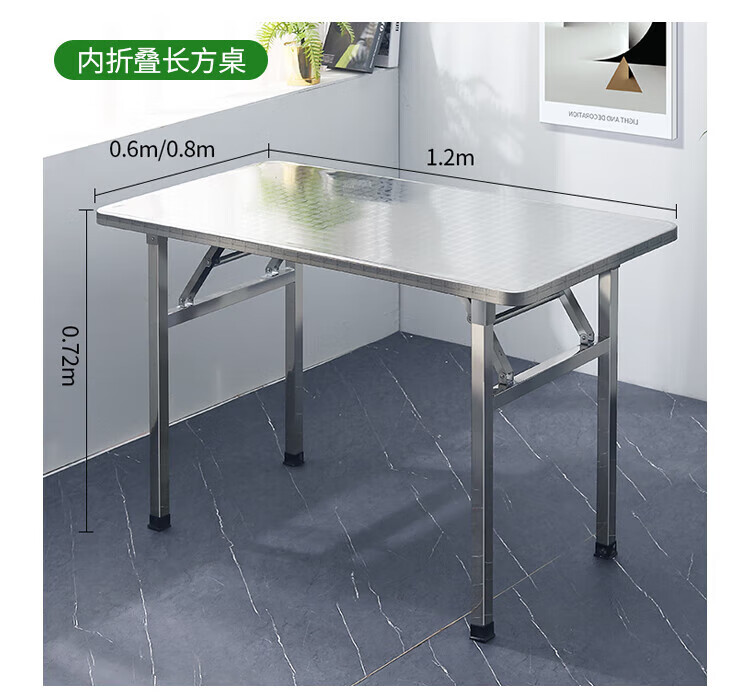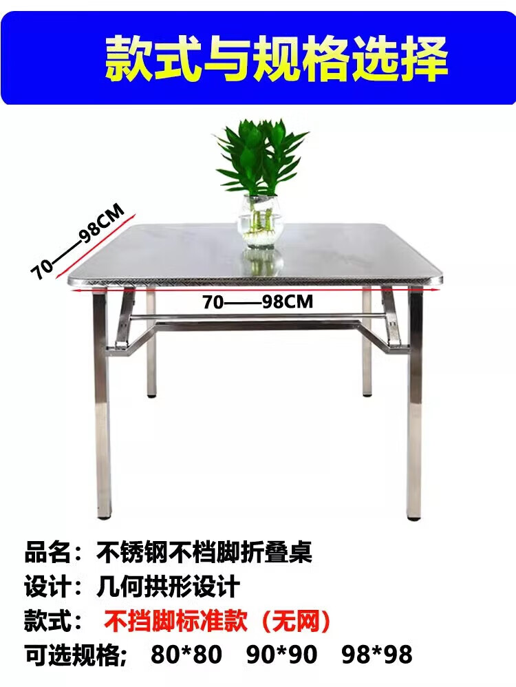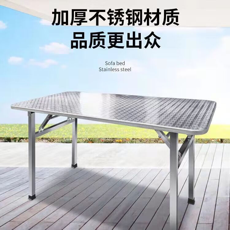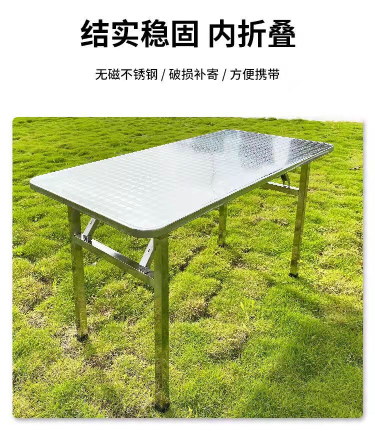 不锈钢桌子正方形烧烤桌折叠方桌长条桌四方桌吃饭桌家用夜市 1.2米圆台桌