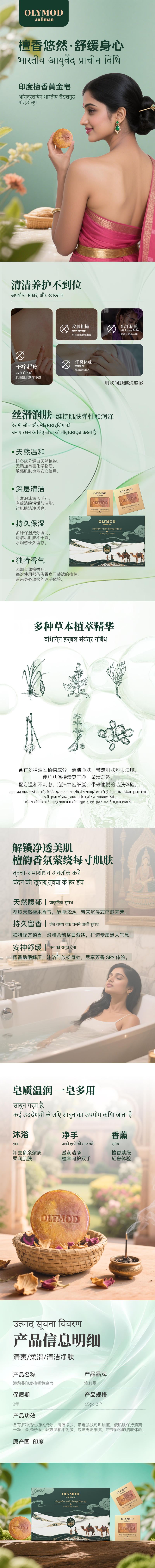 N.J.V印度进口OLYMOD澳莉曼檀香黄金皂古法熬制洁面清洁滋润肌肤香皂 檀香黄金皂65g*12枚【送2块试用装】