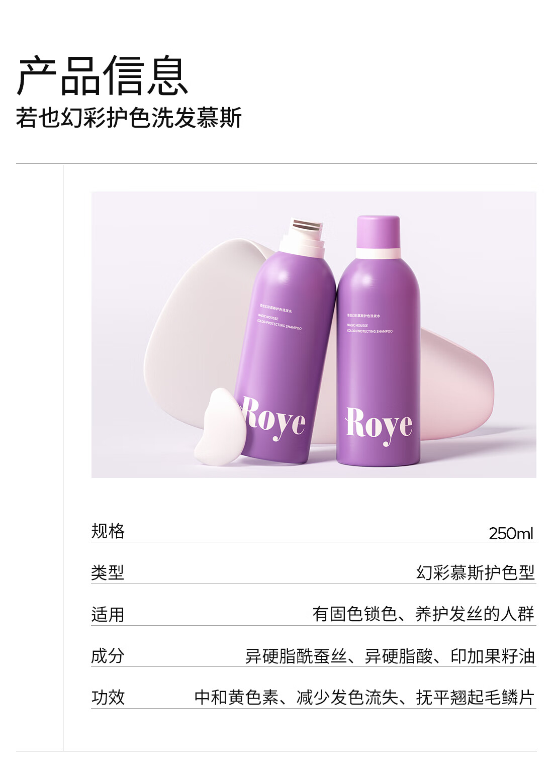 roye慕斯护色固色去黄洗发水锁色非补色洗头水 【染发固色】锁色鲜亮慕斯250ml*1