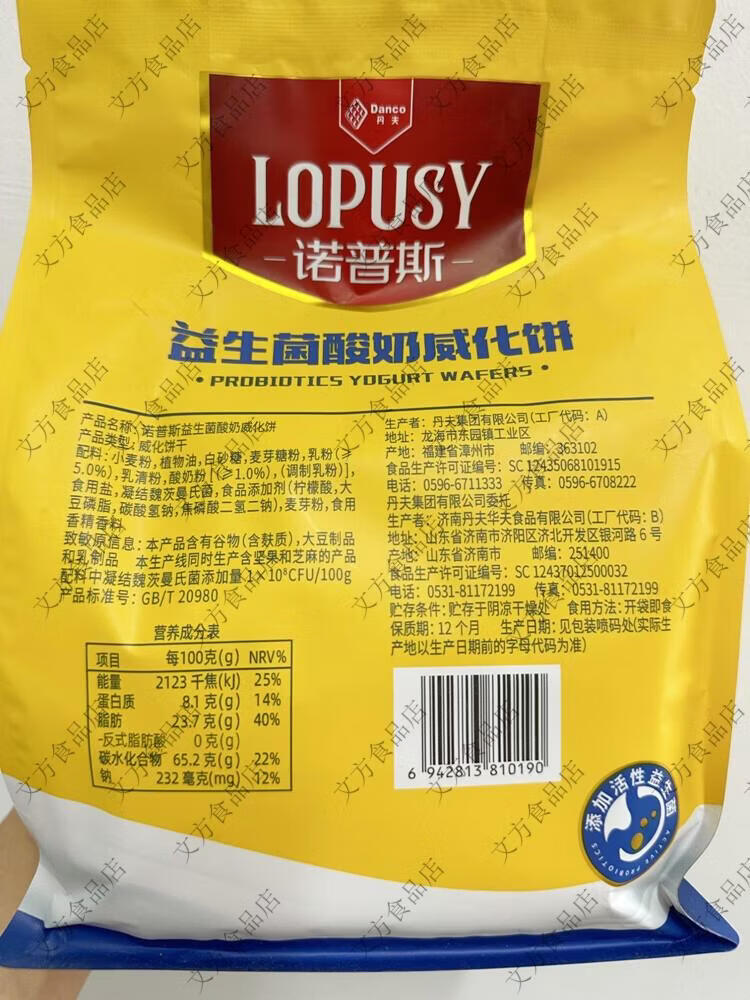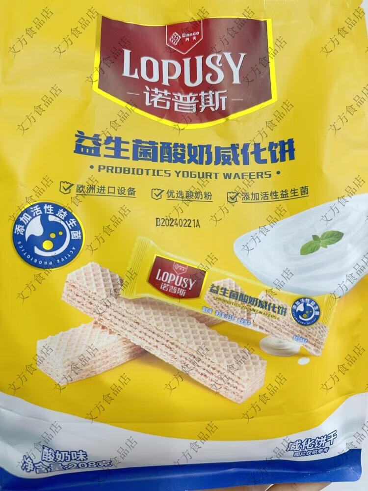 上海麦德龙代购丹夫诺普斯益生菌酸奶威化饼208g独立包装休闲零食 饼208g
