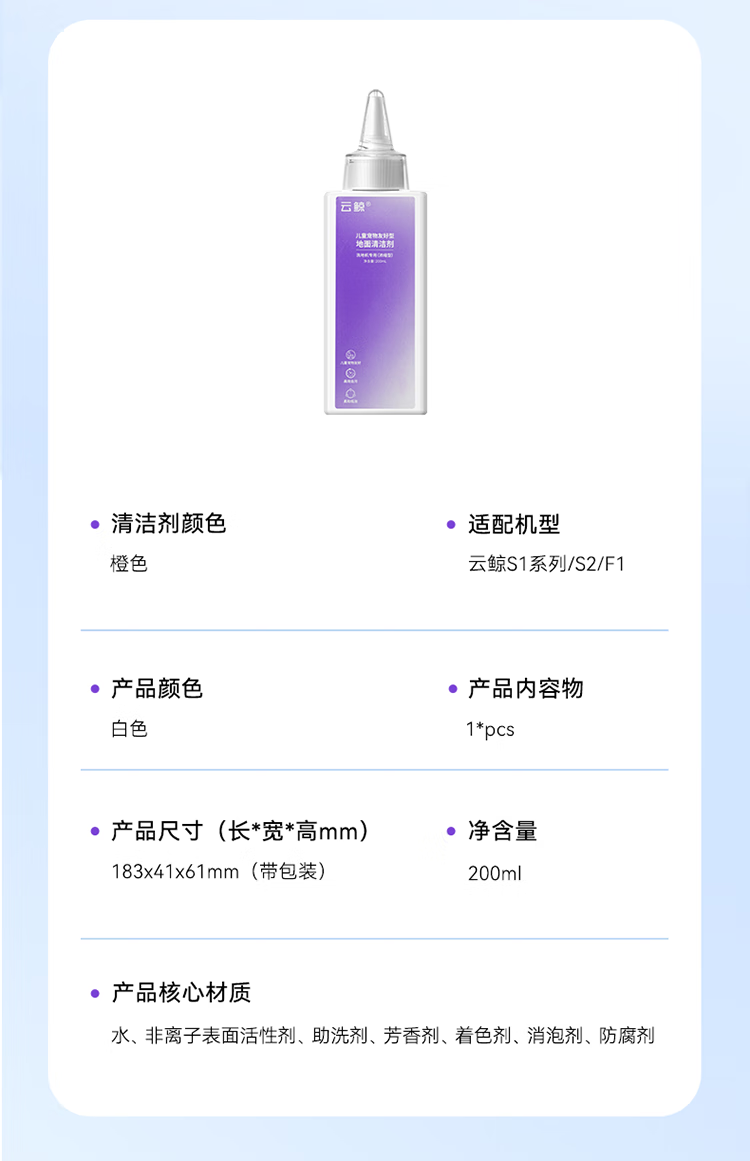 云鲸智能家用洗地机原装配件耗材通用 清洁剂-适用于所有洗地机型号