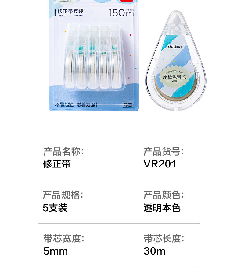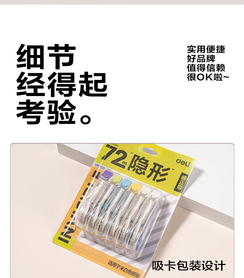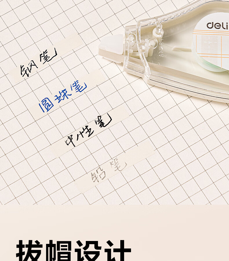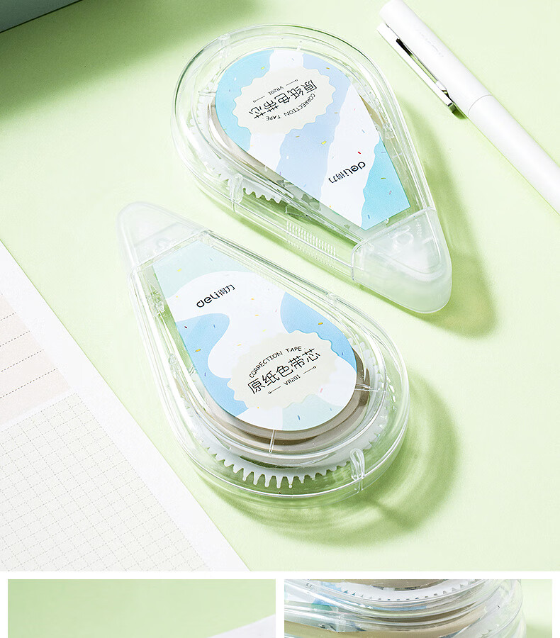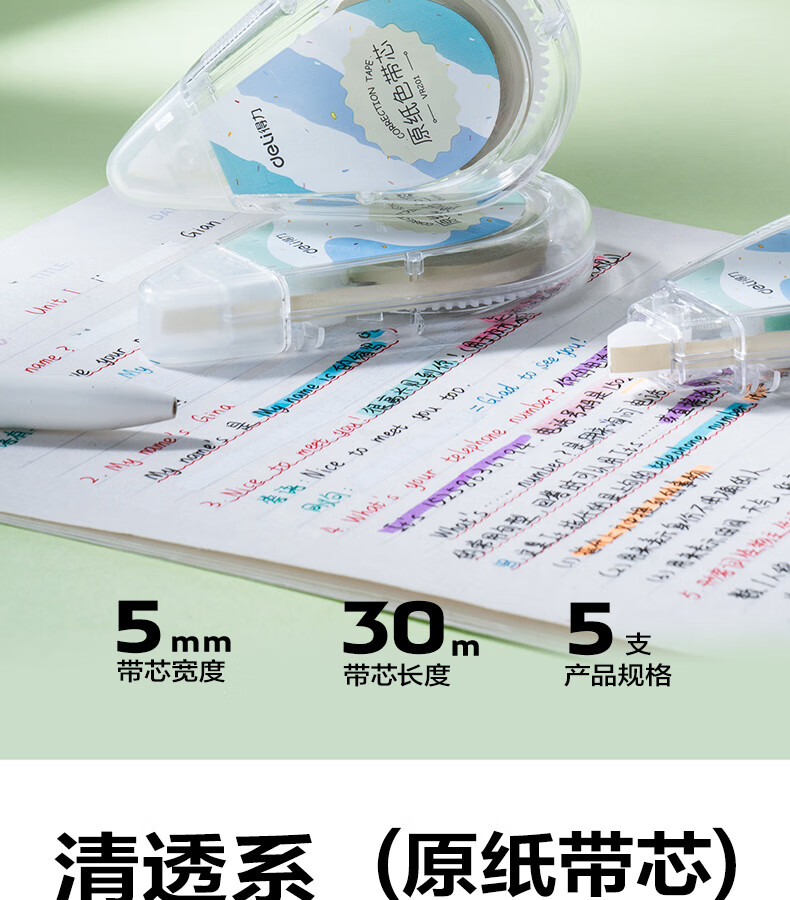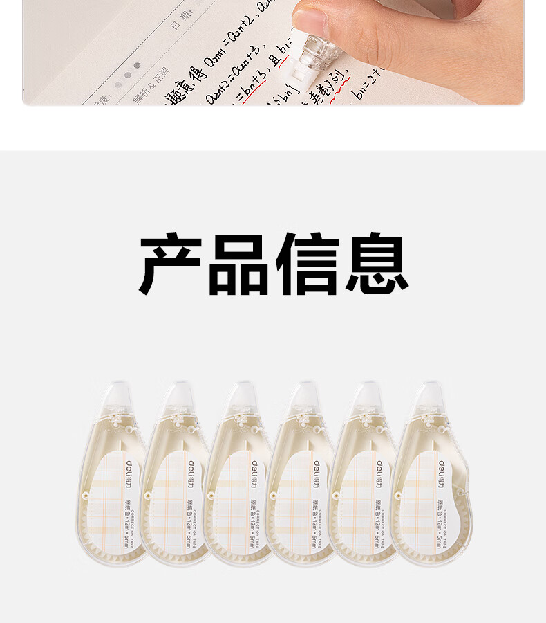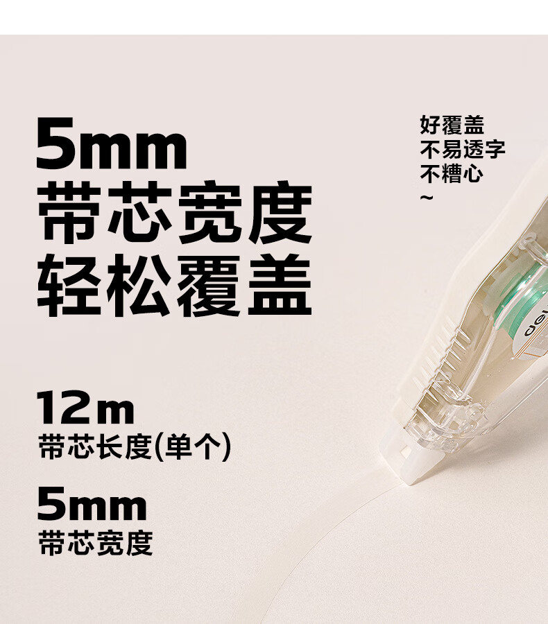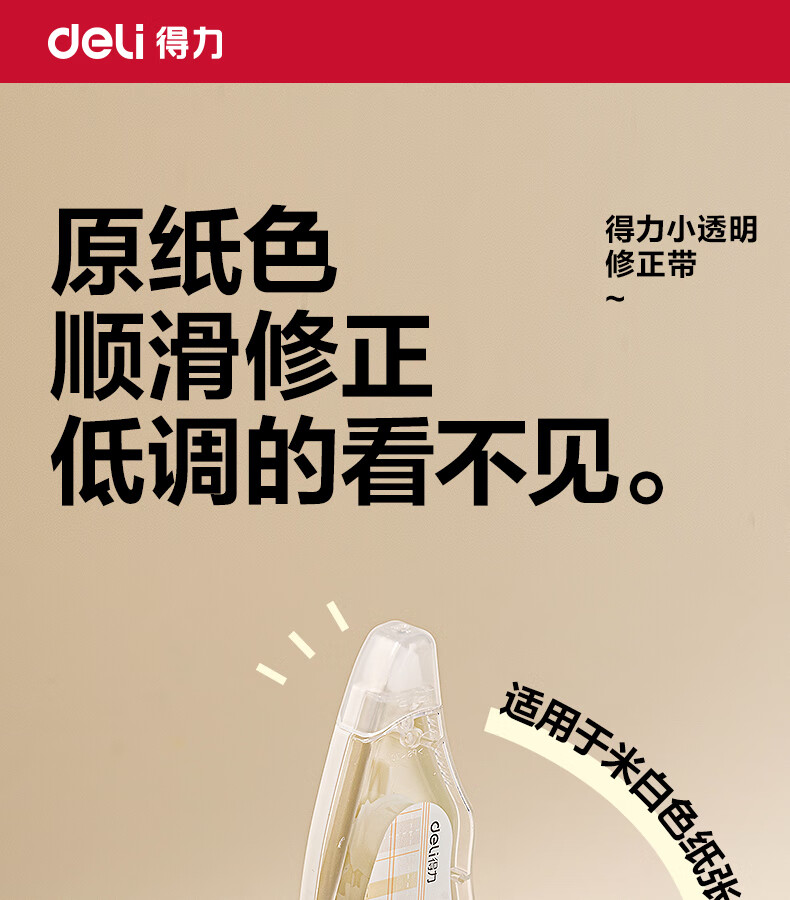 得力(deli)米黄色修正带隐形原纸色涂改带小学生用实惠装修改带护眼色黄色高颜值改字带大容量静音改错带初中 【5支装共200M】原纸色带芯