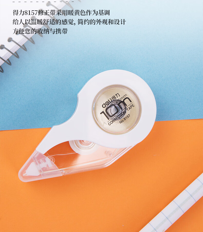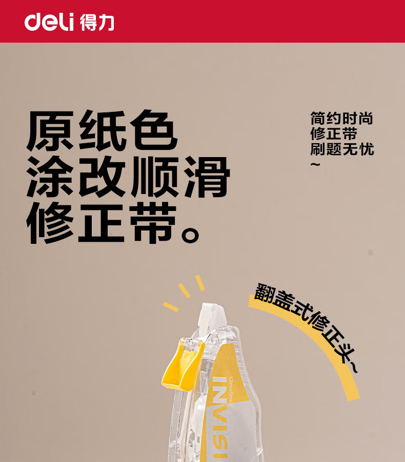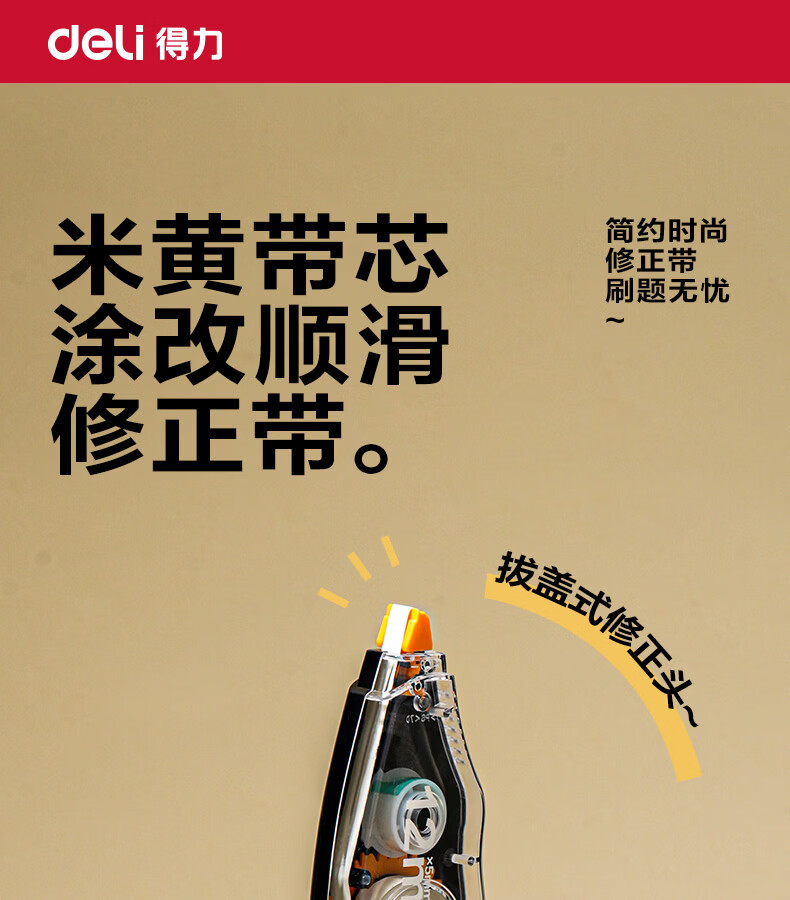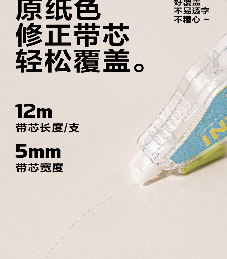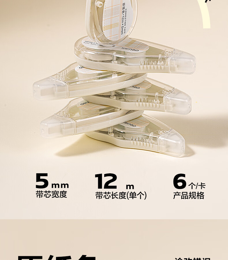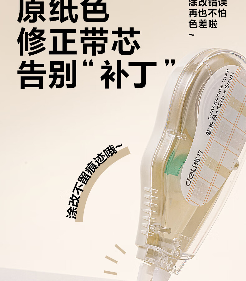 得力(deli)米黄色修正带隐形原纸色涂改带小学生用实惠装修改带护眼色黄色高颜值改字带大容量静音改错带初中 【12支装共144M】原纸色带芯