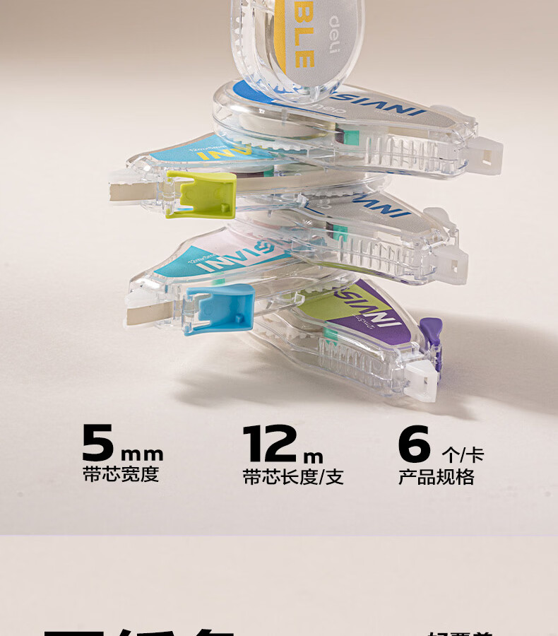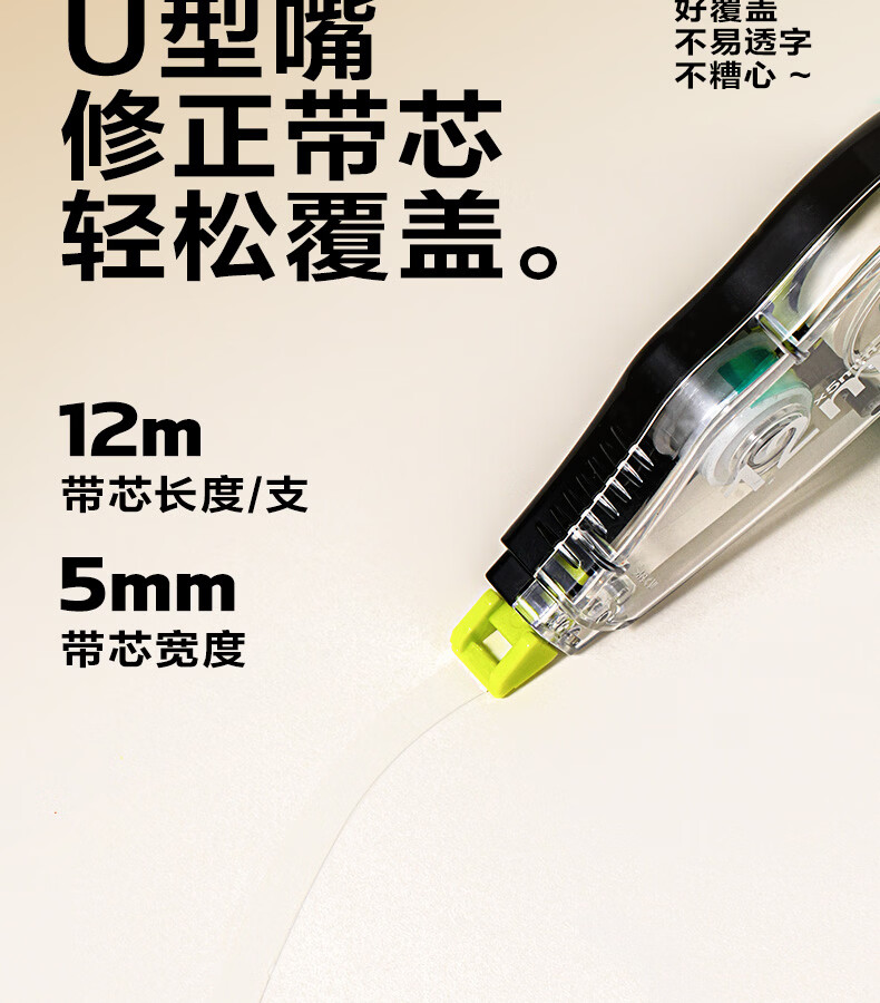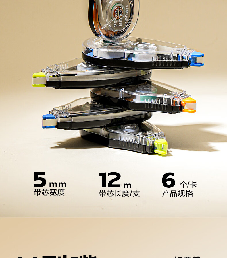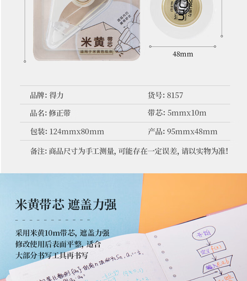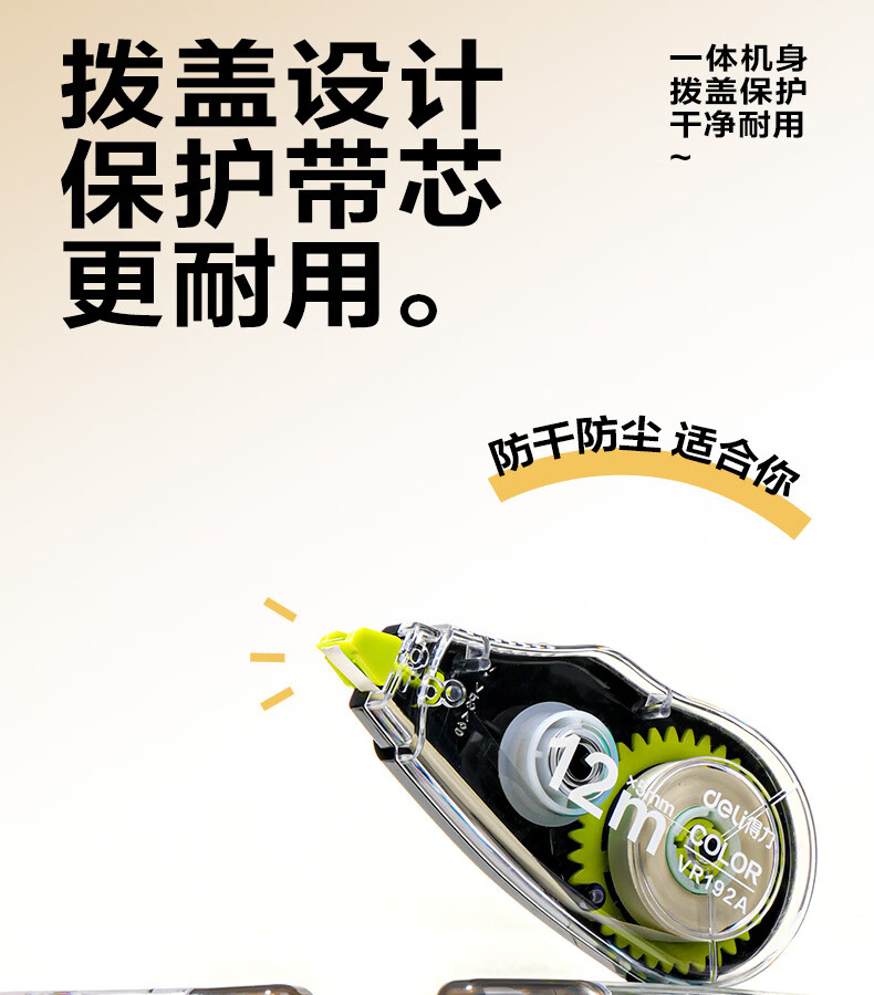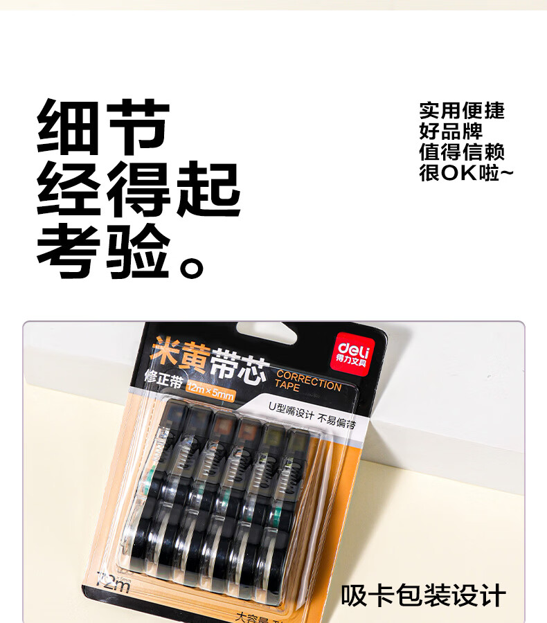 得力(deli)米黄色修正带隐形原纸色涂改带小学生用实惠装修改带护眼色黄色高颜值改字带大容量静音改错带初中 【12支装共144M】原纸色带芯