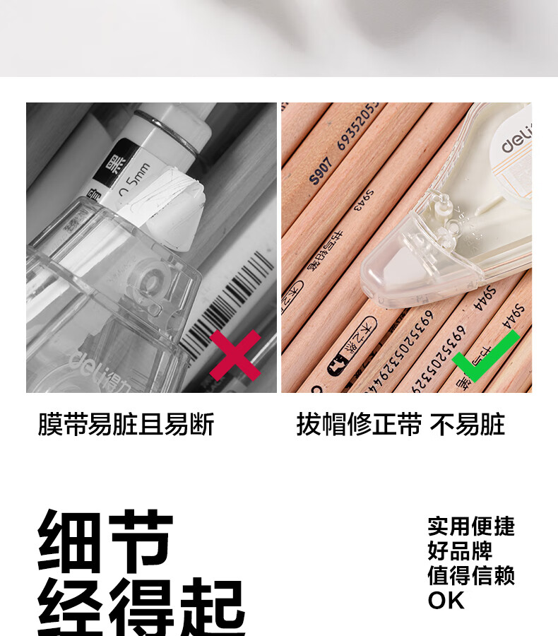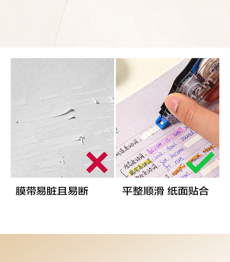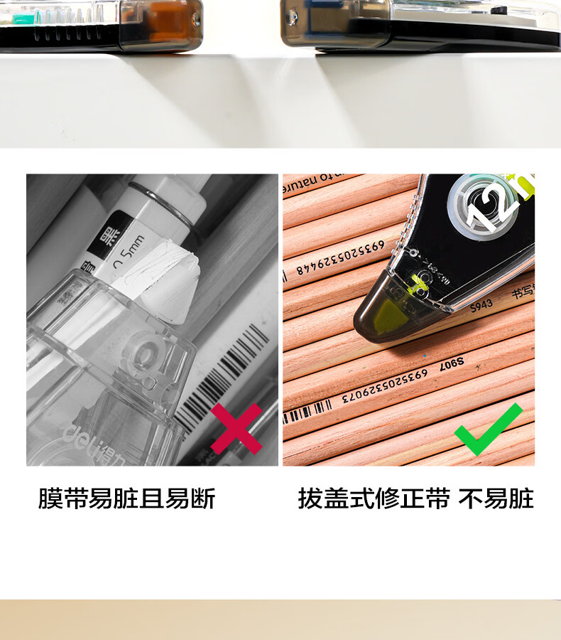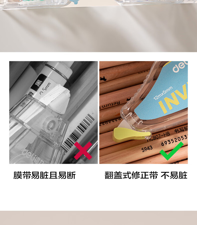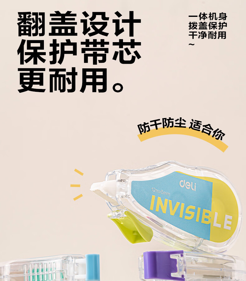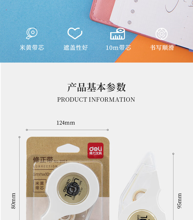 得力(deli)米黄色修正带隐形原纸色涂改带小学生用实惠装修改带护眼色黄色高颜值改字带大容量静音改错带初中 【12支装共144M】原纸色带芯