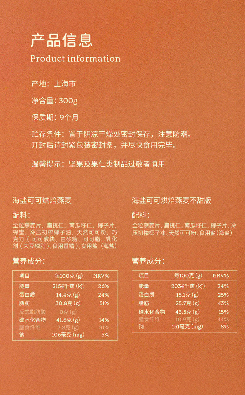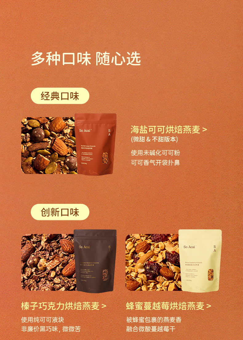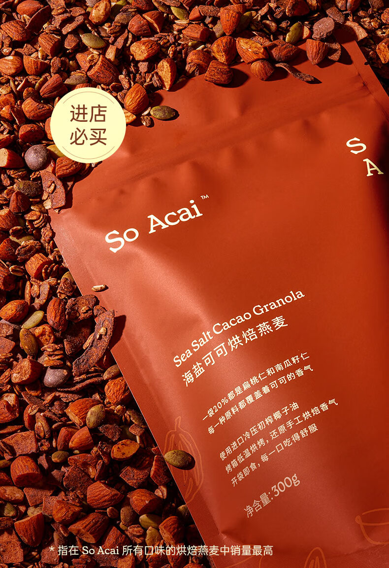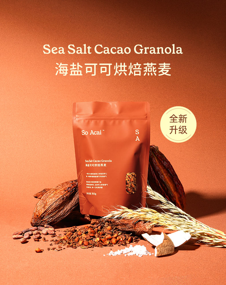 SO ACAI海盐可可烘焙燕麦片坚果即食晚餐零食谷物酸奶碗配料营养早餐300g
