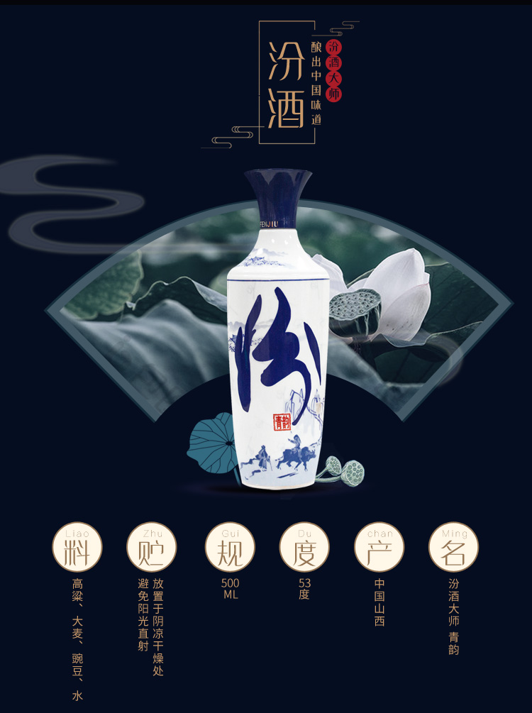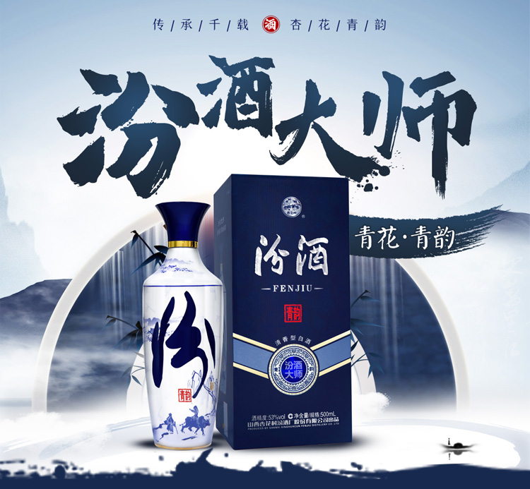 汾酒 青花大师 青韵 清香型 白酒 53度 500ml 单瓶装