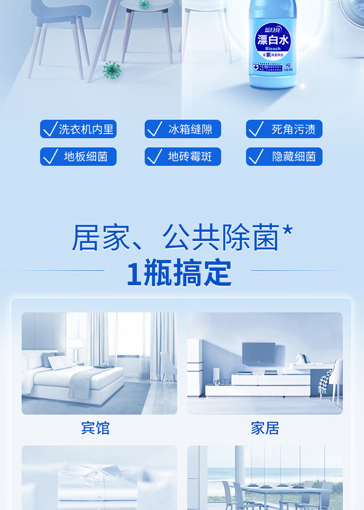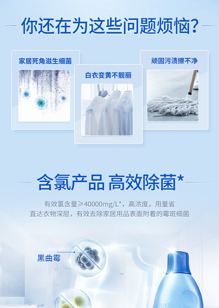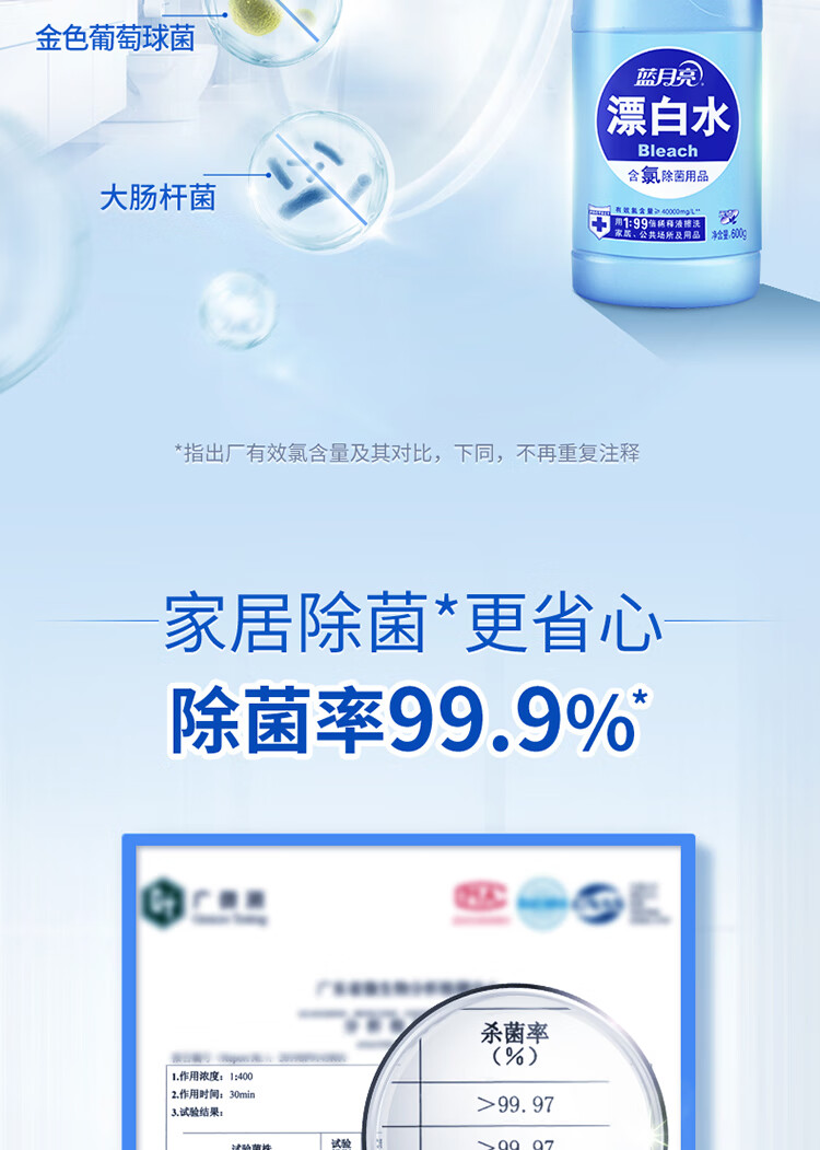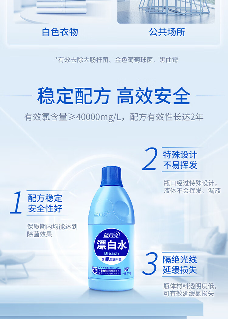 蓝月亮 漂白水含氯除菌用品 600g 除菌率99.9% 去渍漂白高效除菌