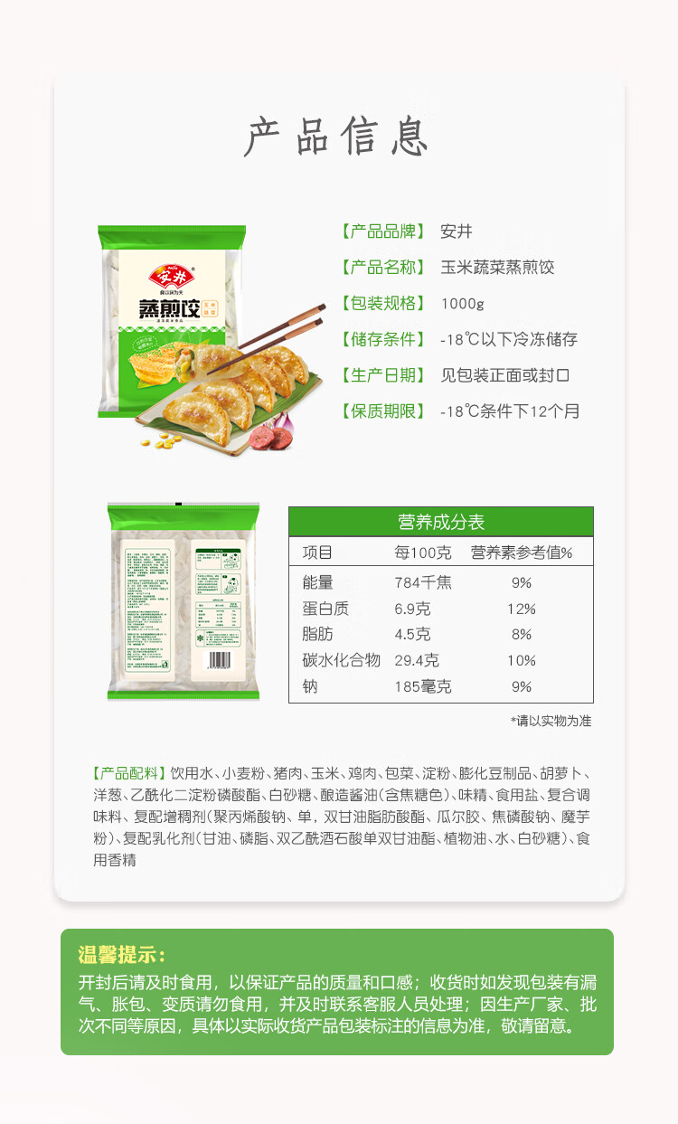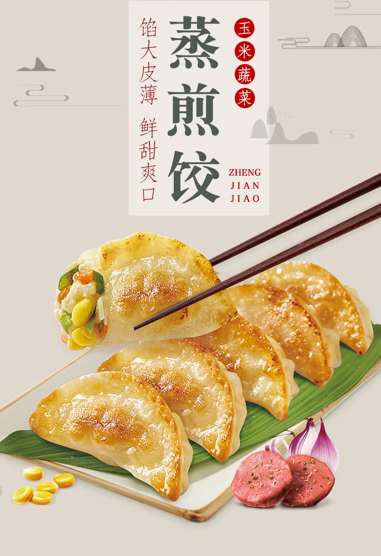 安井 玉米蔬菜蒸煎饺 1kg 2斤装约48个 锅贴蒸饺早餐 营养熟食点心
