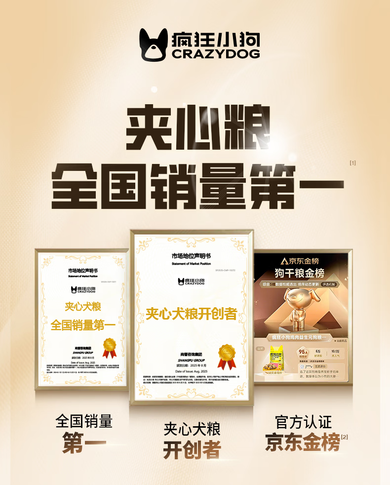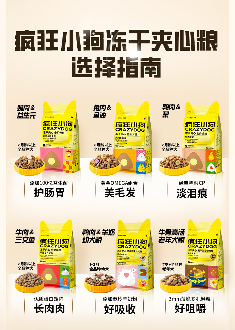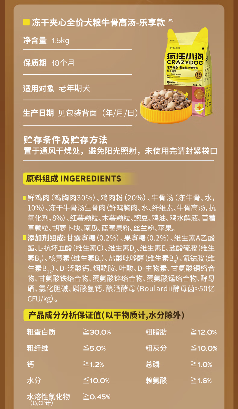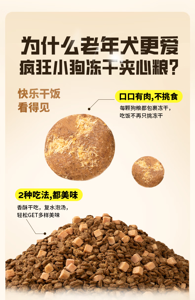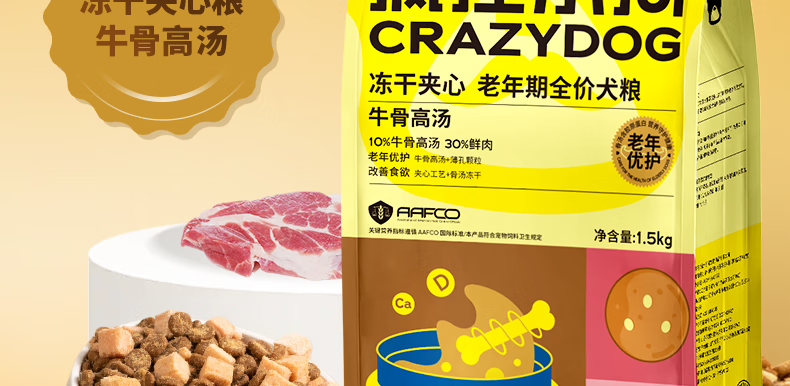 疯狂小狗老年犬狗粮小耳朵冻干夹心粮1.5kg牛骨高汤中老年通用粮3斤