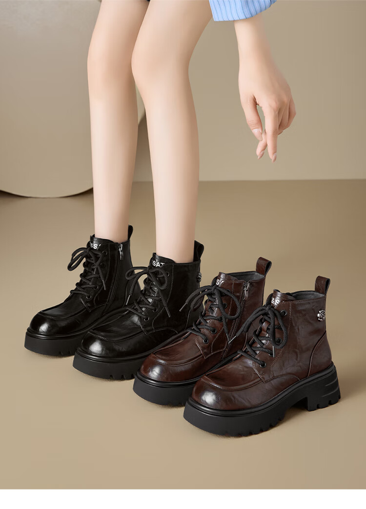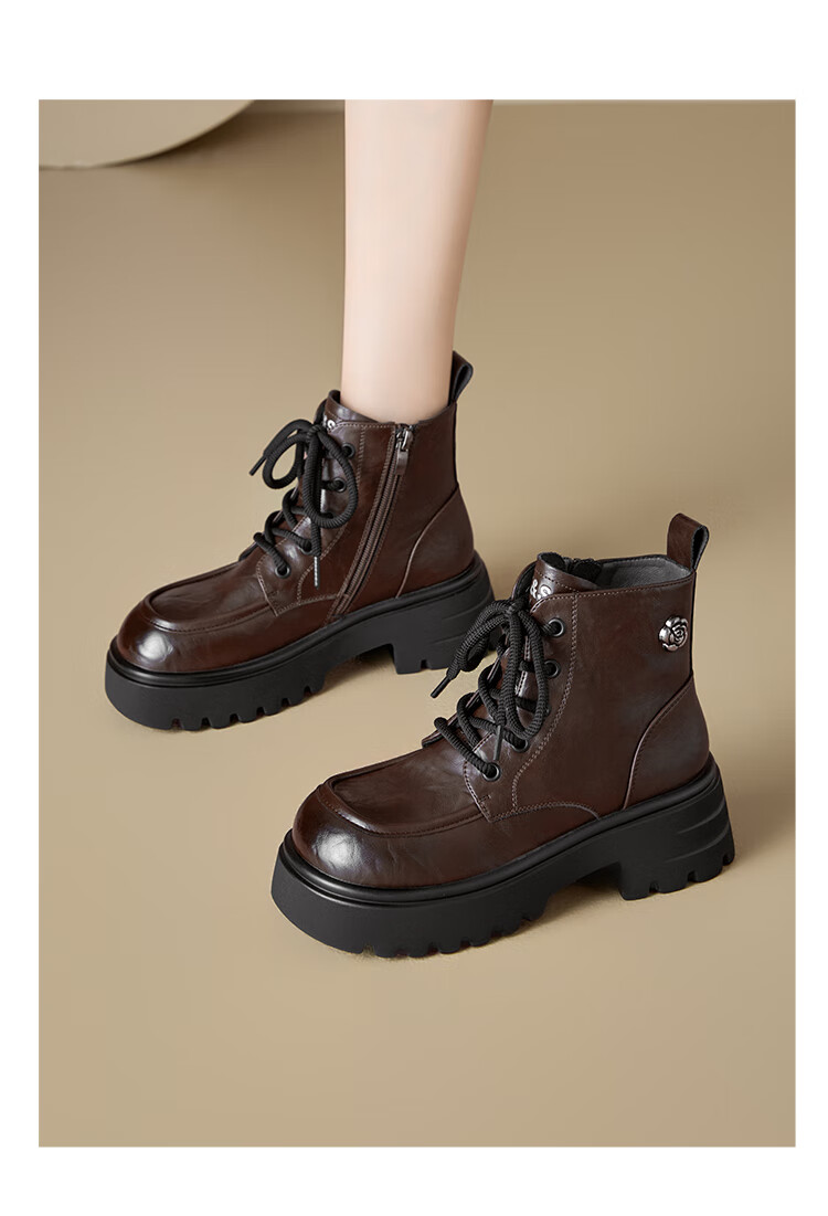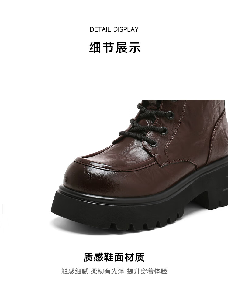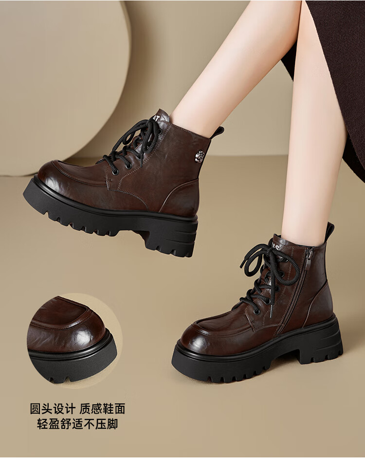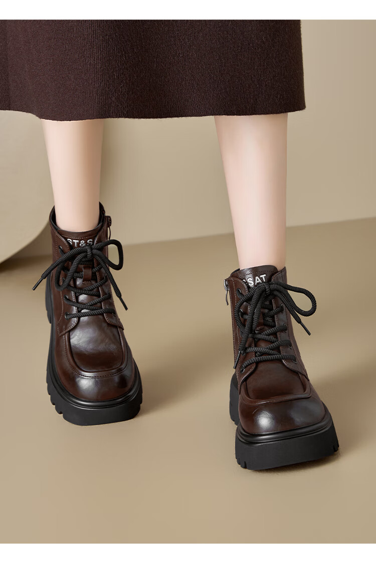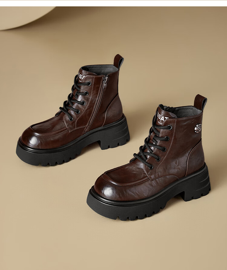 星期六厚底马丁靴女款2025秋季新款复古百搭英伦风软底不累脚通勤瘦瘦靴 棕色 37