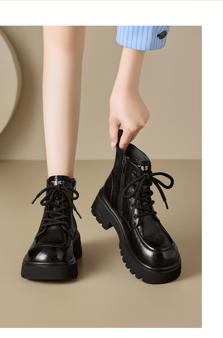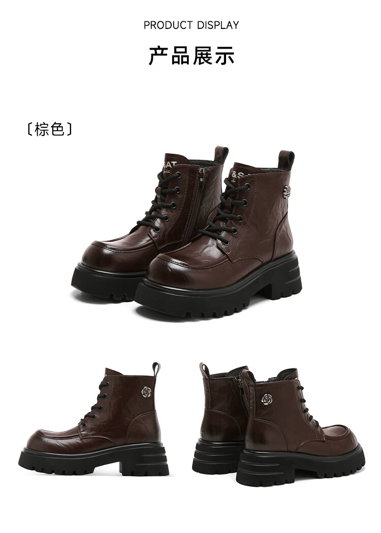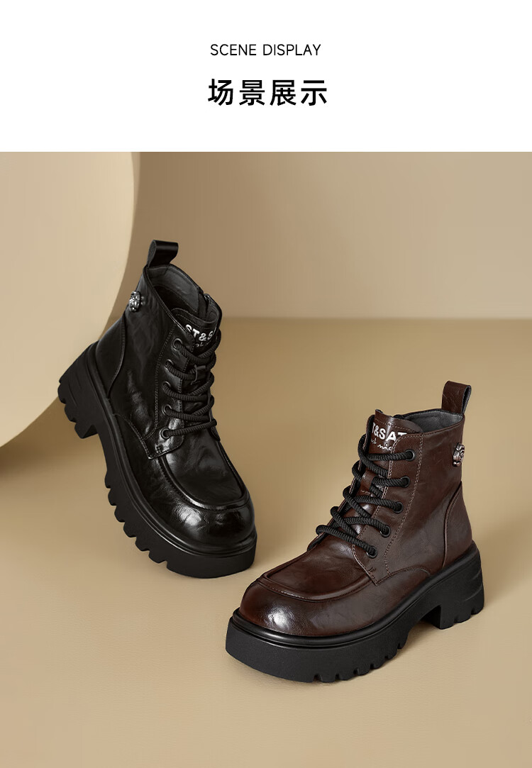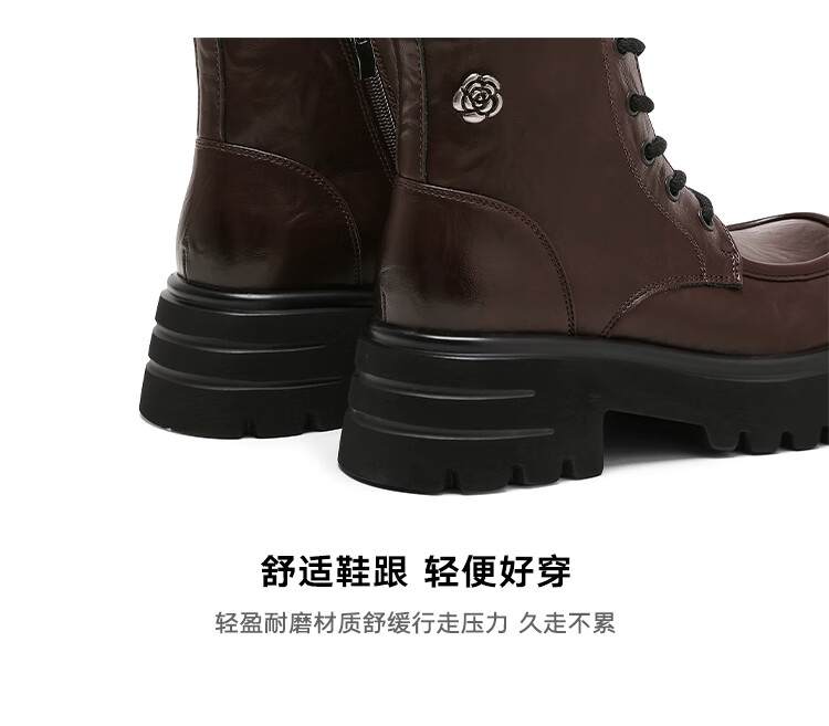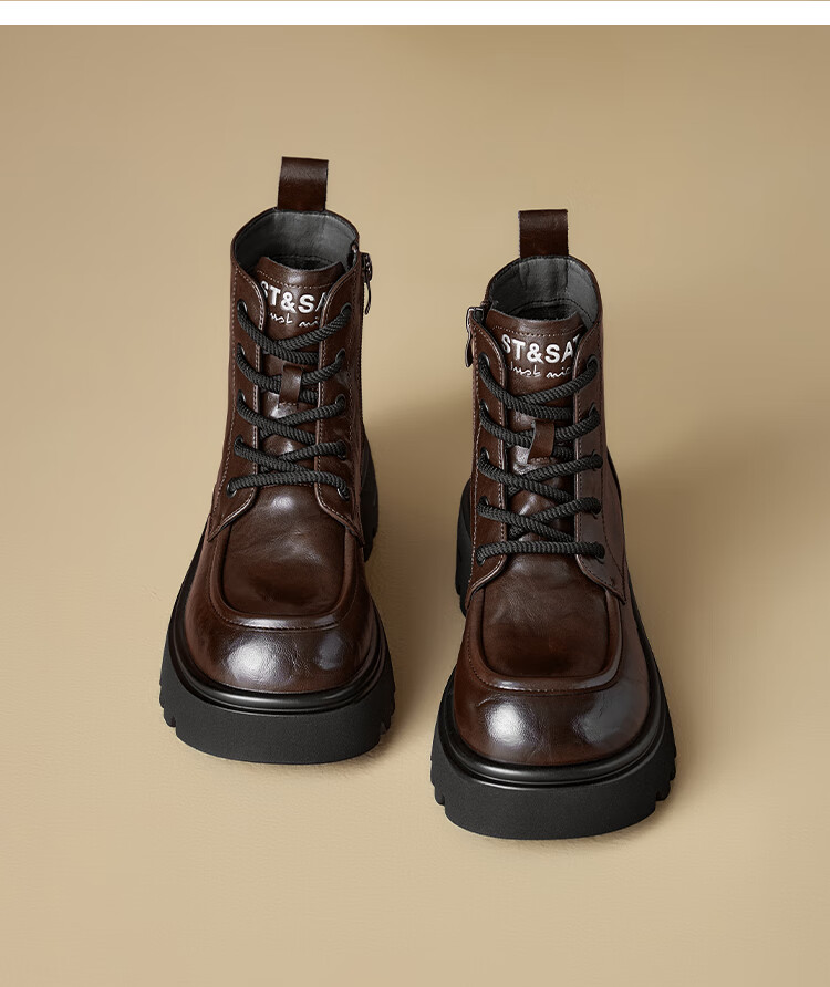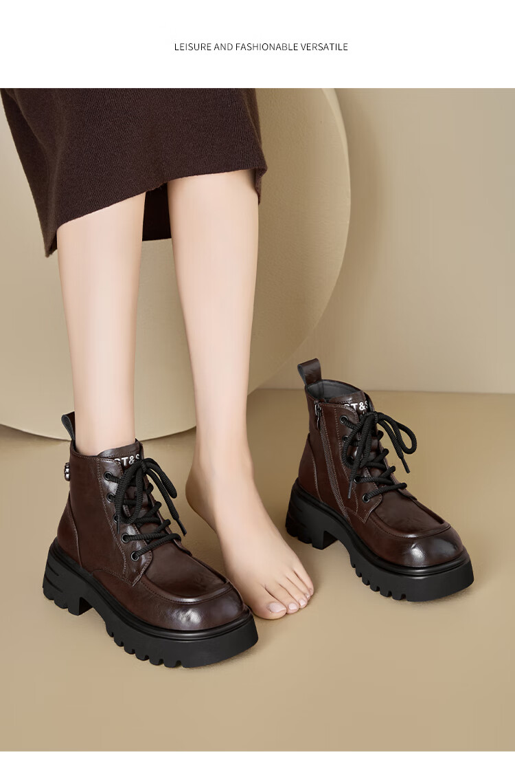 星期六厚底马丁靴女款2025秋季新款复古百搭英伦风软底不累脚通勤瘦瘦靴 棕色 37
