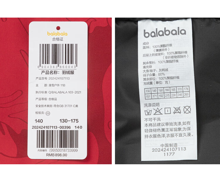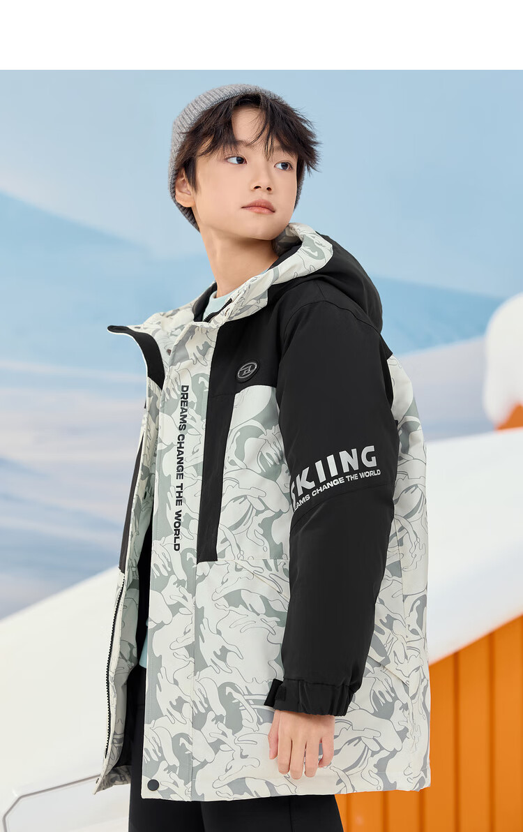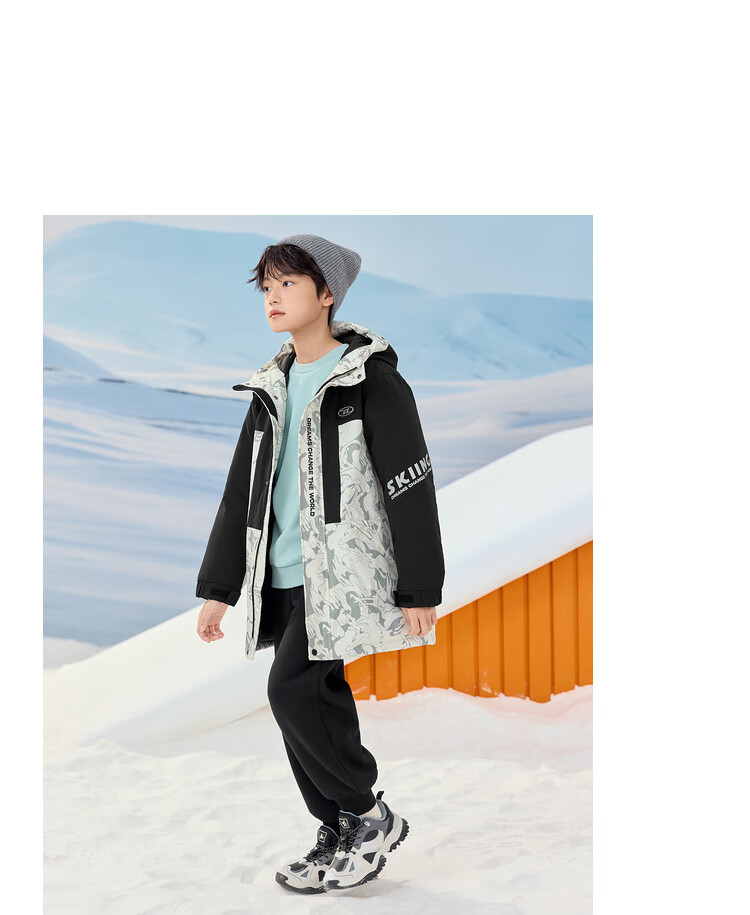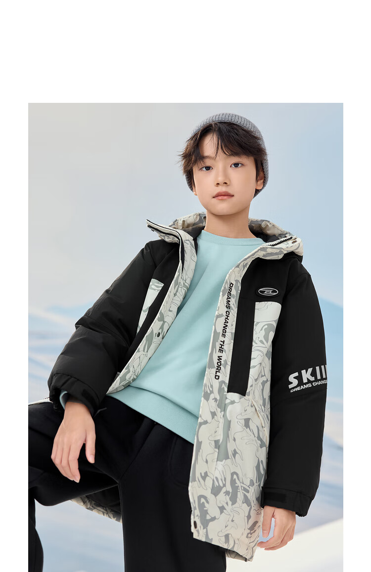 巴拉巴拉童装儿童羽绒服男童冬季中长款防护保暖上衣加厚舒适户外 黑白色调00391(灰鸭绒) 150 (充绒量192g)