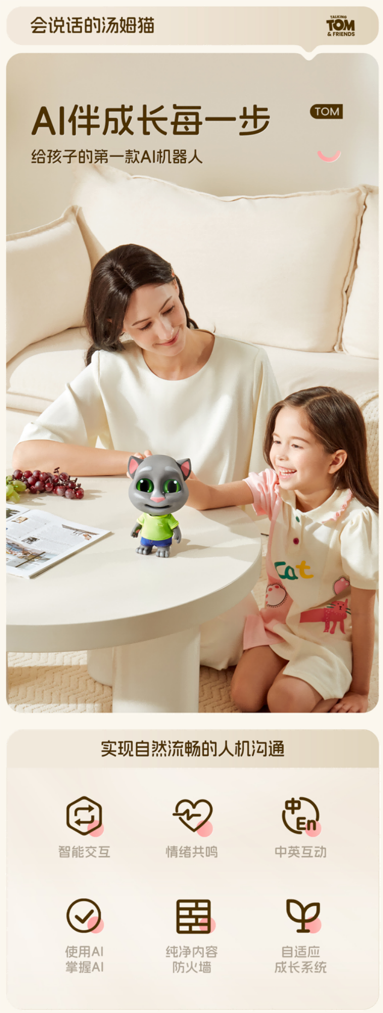 会说话的汤姆猫AI玩具童伴机器人儿童玩具陪伴AI智能对话男女孩新年元旦礼物2年