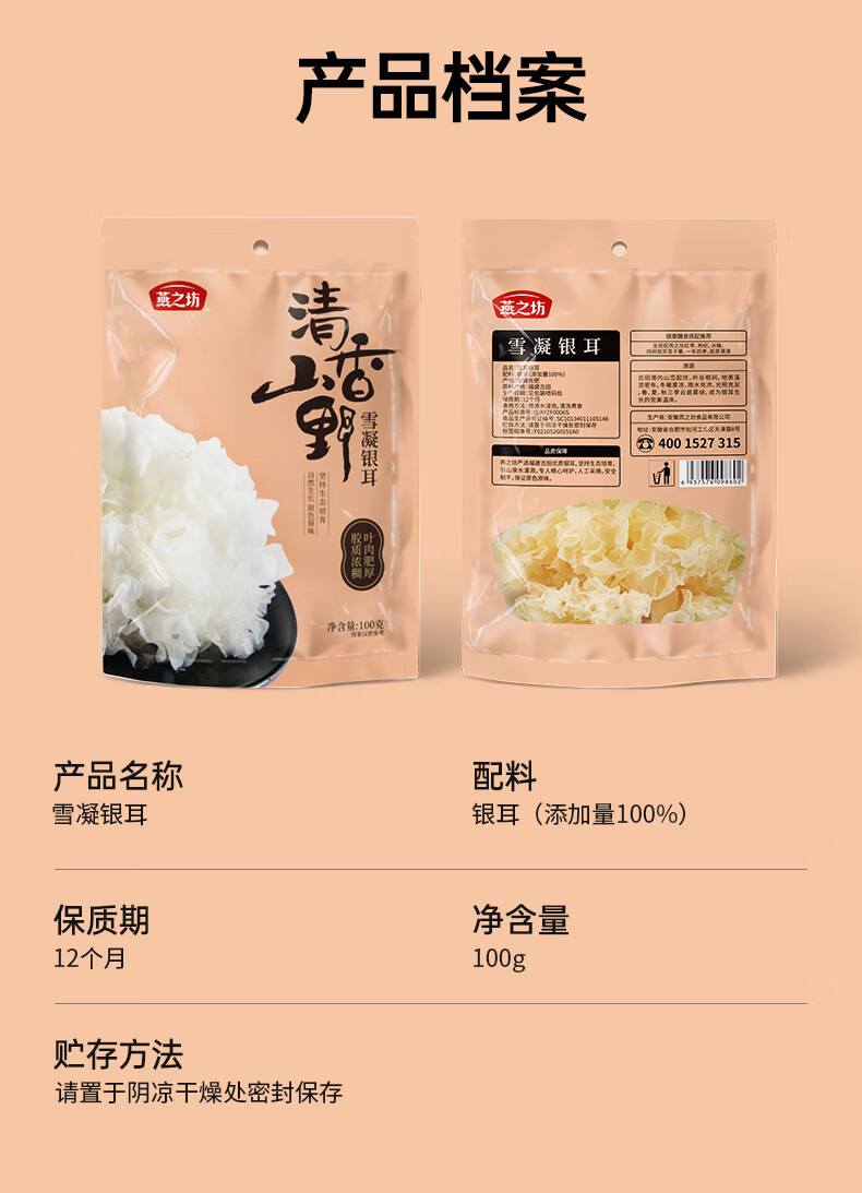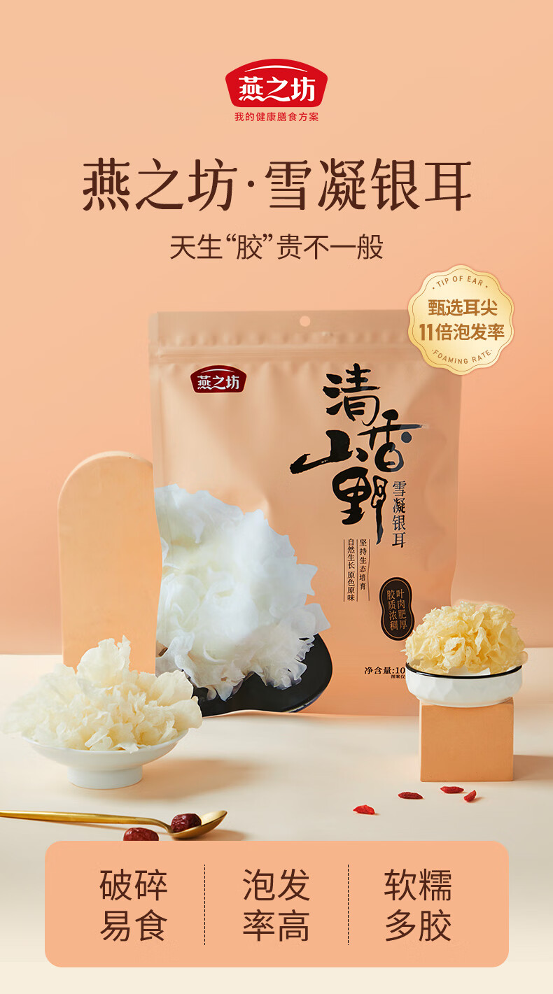 燕之坊雪凝银耳100g白木耳糯耳 煲汤 百合桂圆银耳莲子羹配料