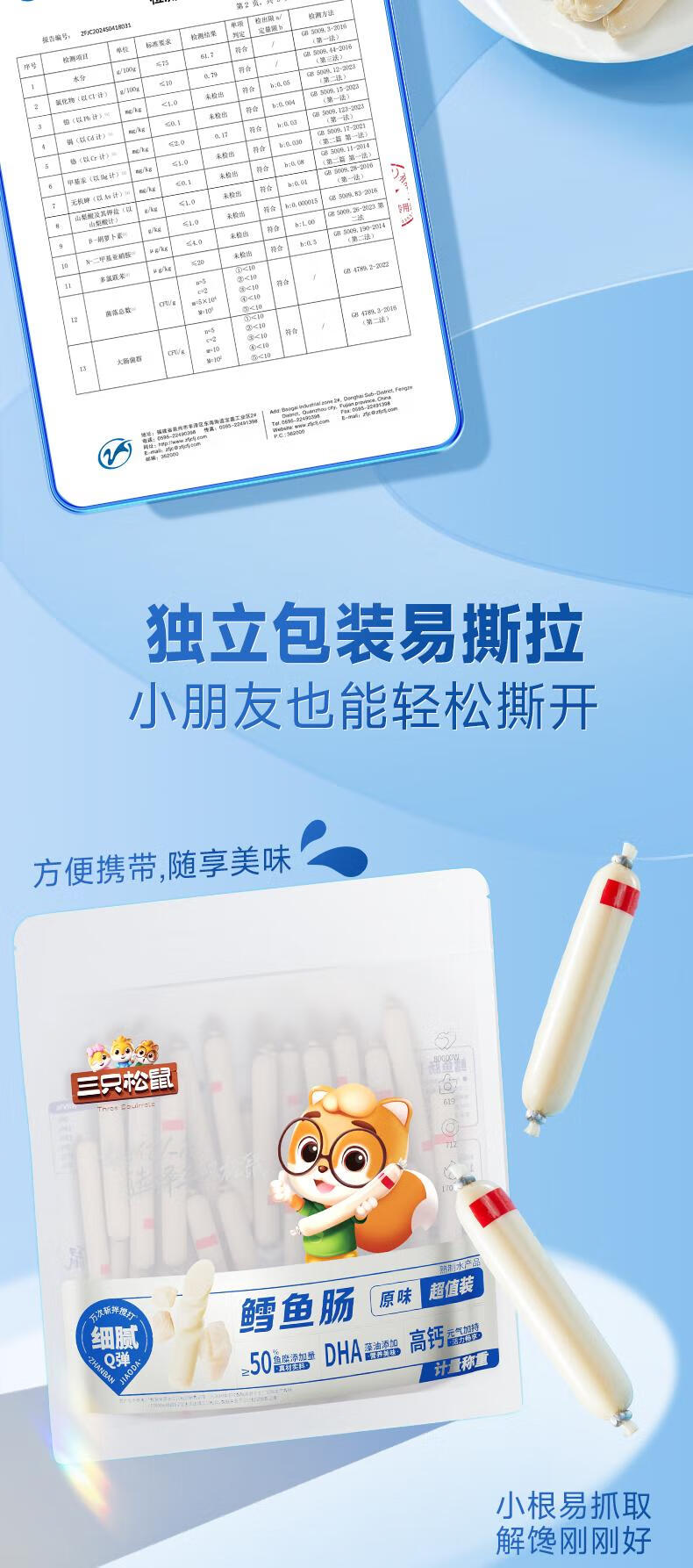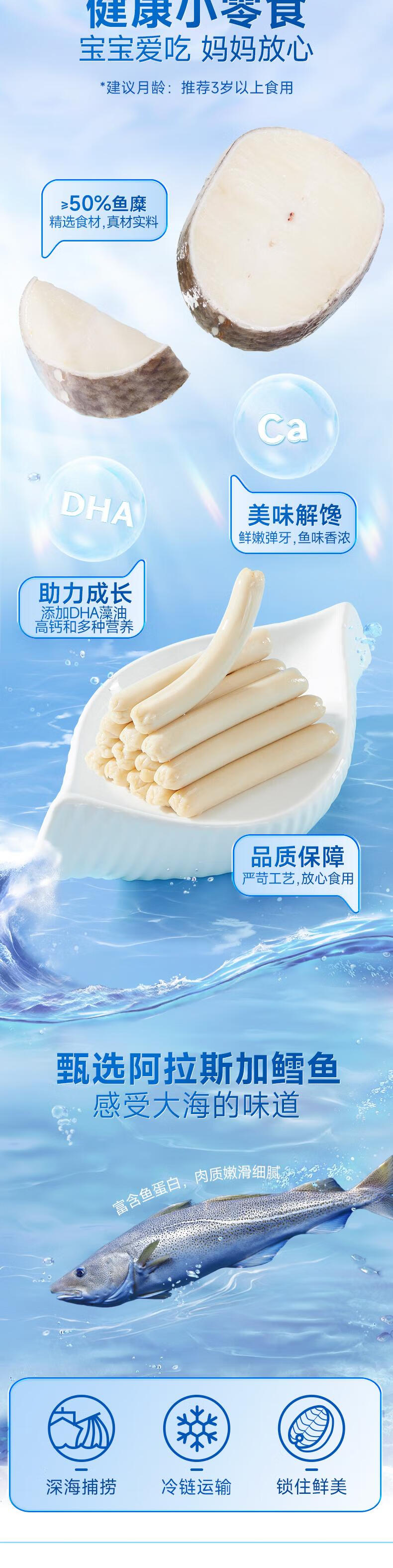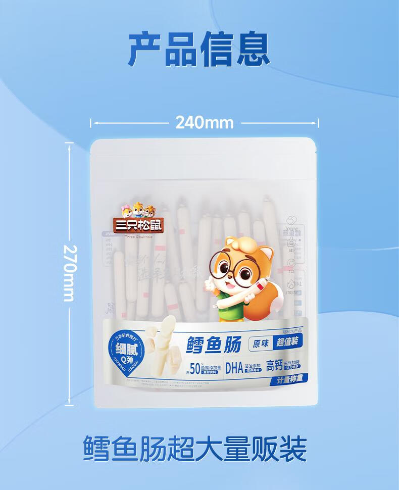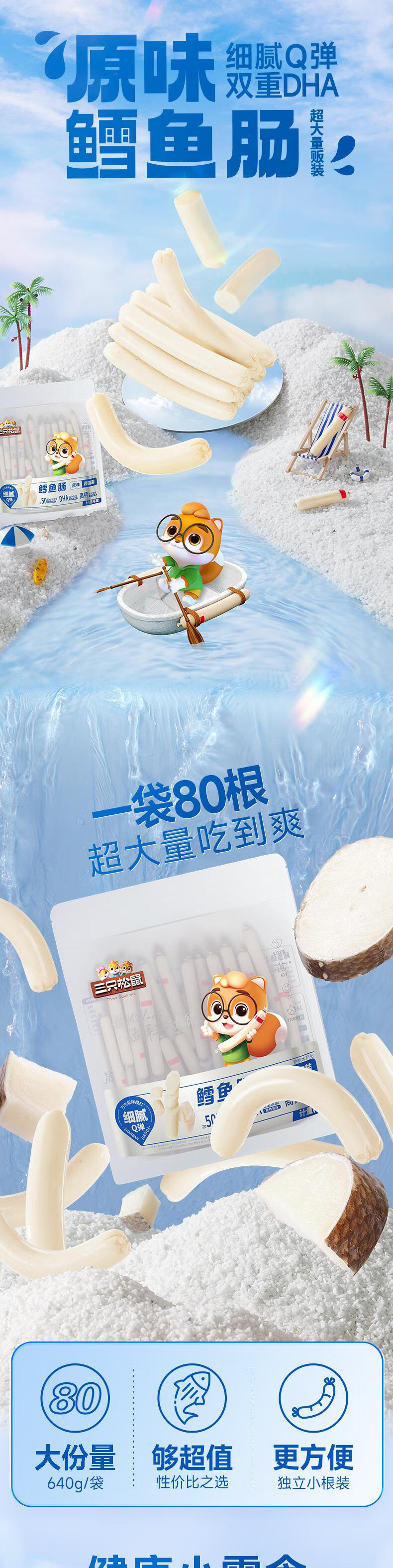 三只松鼠鳕鱼肠原味640g约80根 营养高蛋白解馋休闲即食鱼肠儿童