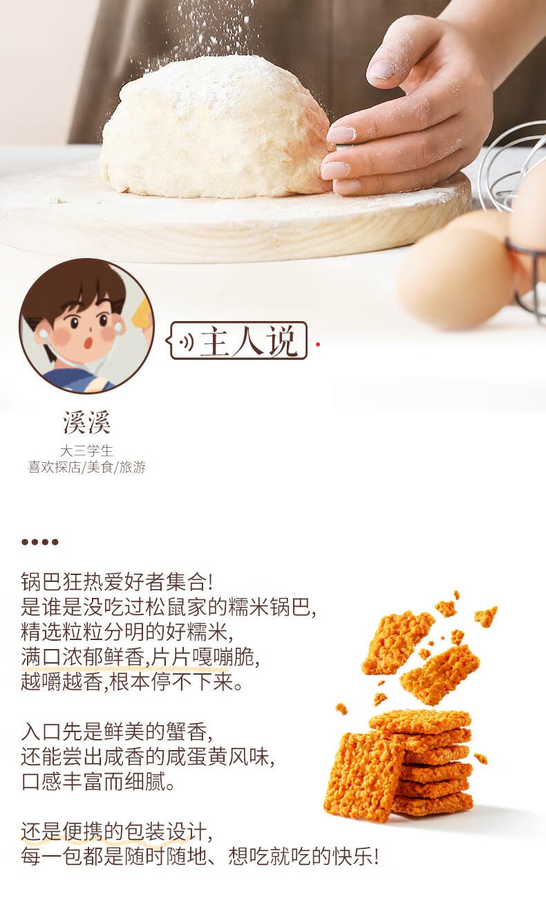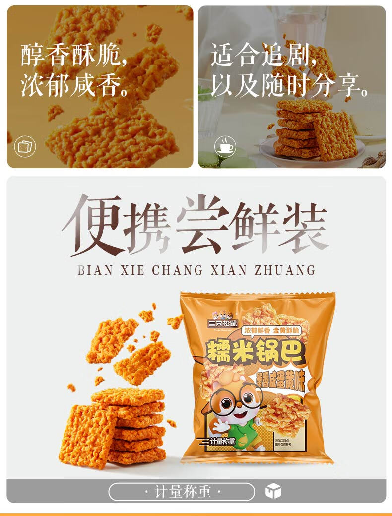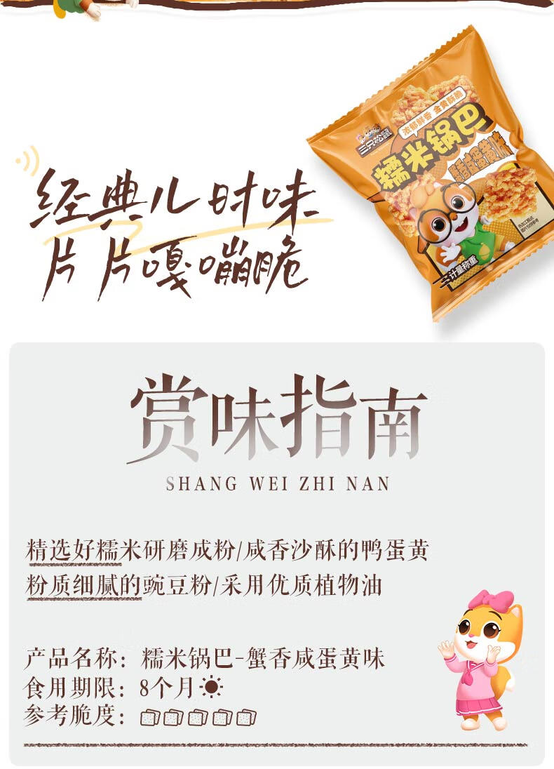 三只松鼠蟹香咸蛋黄味糯米锅巴500g箱装独立小包休闲零食膨化怀旧小吃