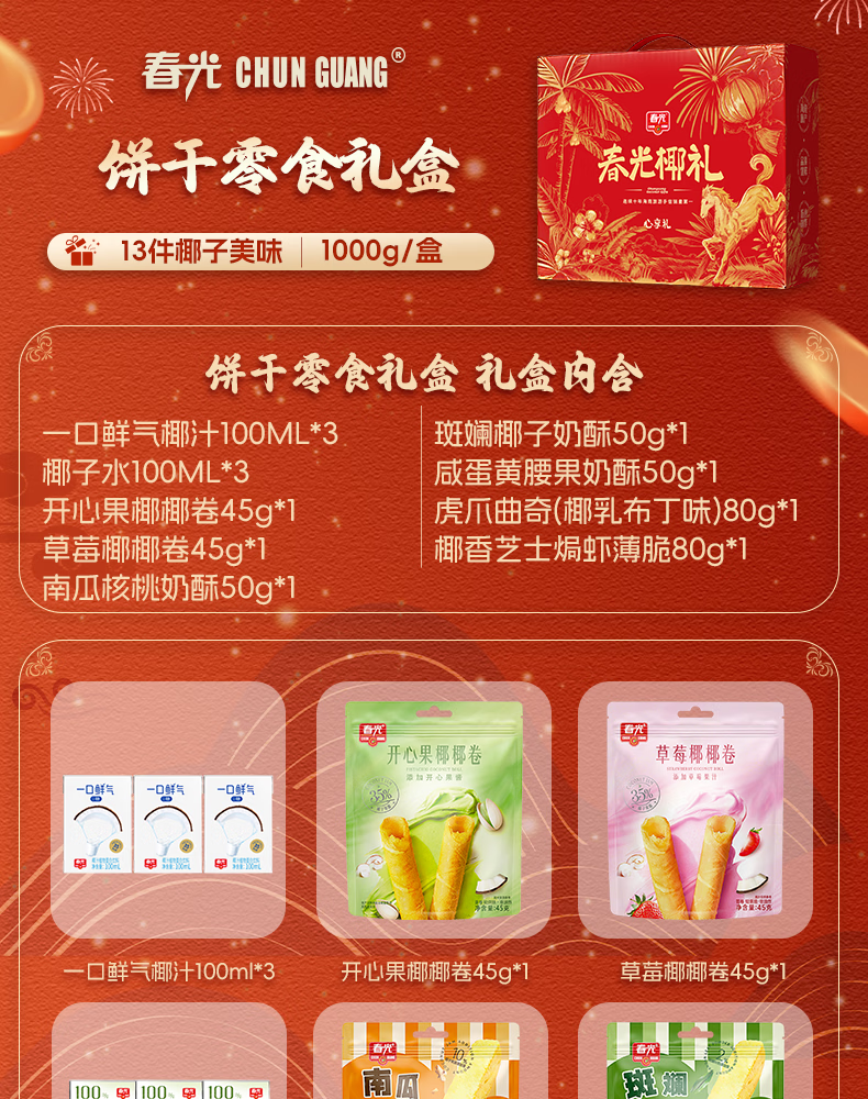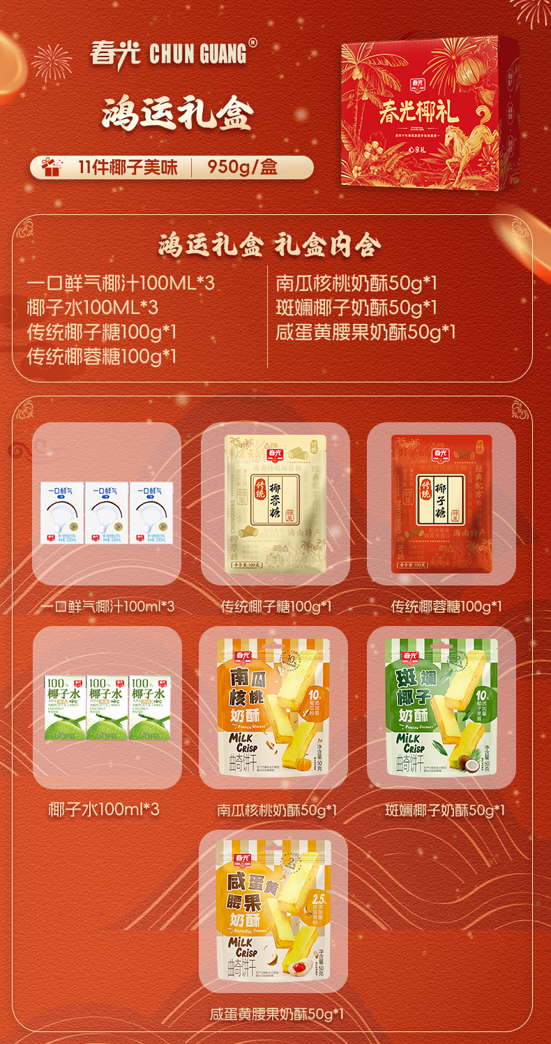 春光食品糖果饼干零食冲饮礼盒海南特产代餐年货送礼春节送礼企业礼品 鸿运礼盒950g