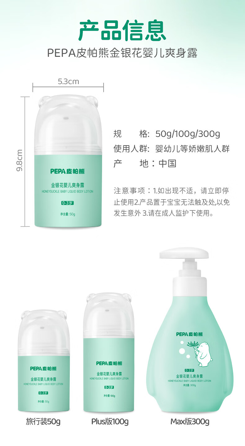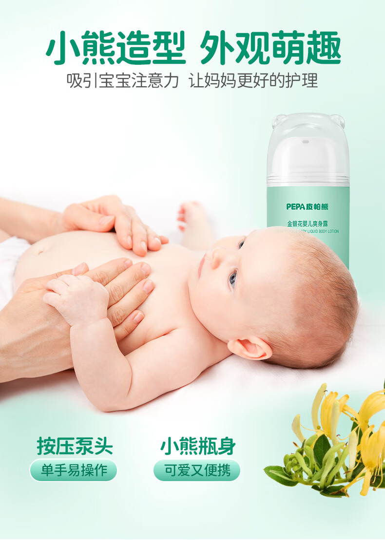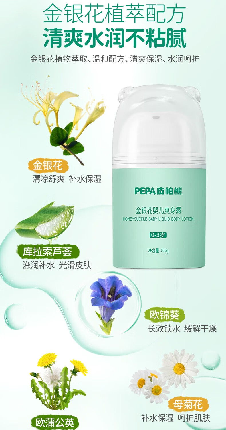 PEPA婴儿金银花液体爽身水痱子粉舒痱儿童新生儿专用宝宝护肤爽身露 金银花液体爽身露50g