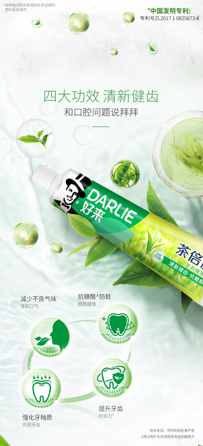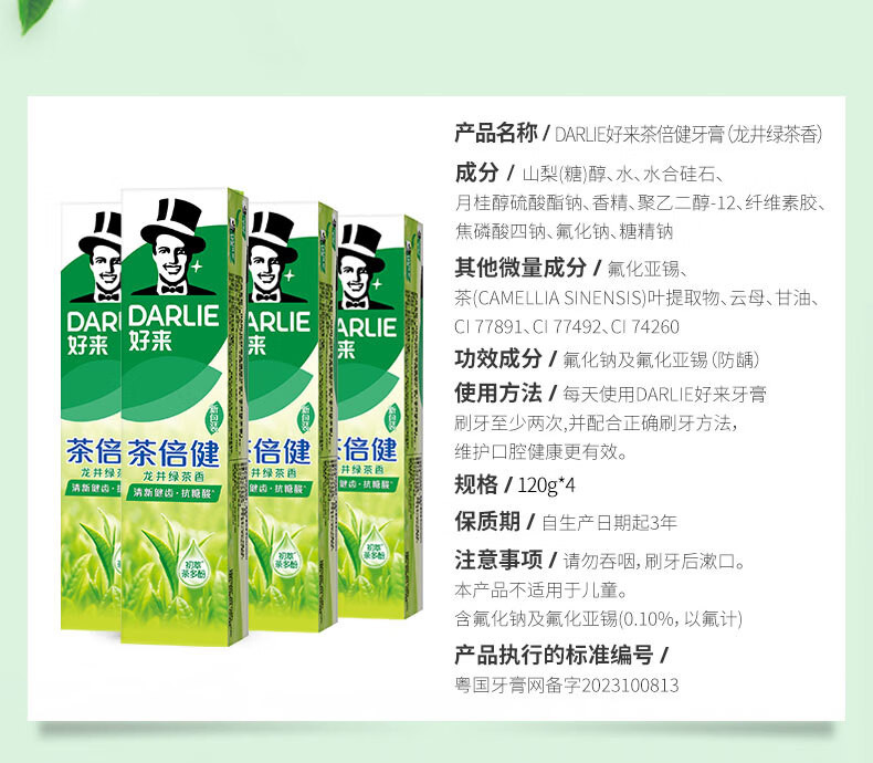 好来(原黑人)茶倍健龙井绿茶牙膏清新口气 护龈健齿 4支共480g