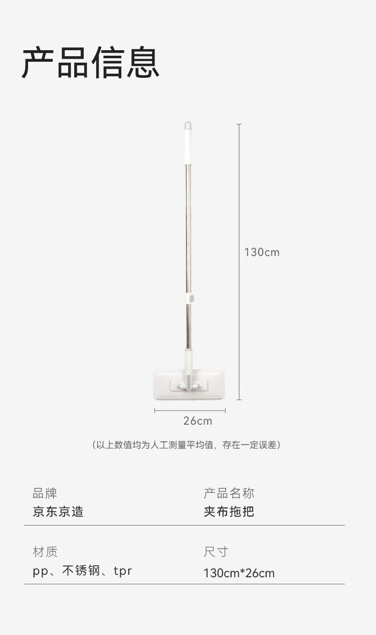 京东京造洗脸巾平板拖把26cm 夹布拖把懒人家用一拖净免手洗拖地神器