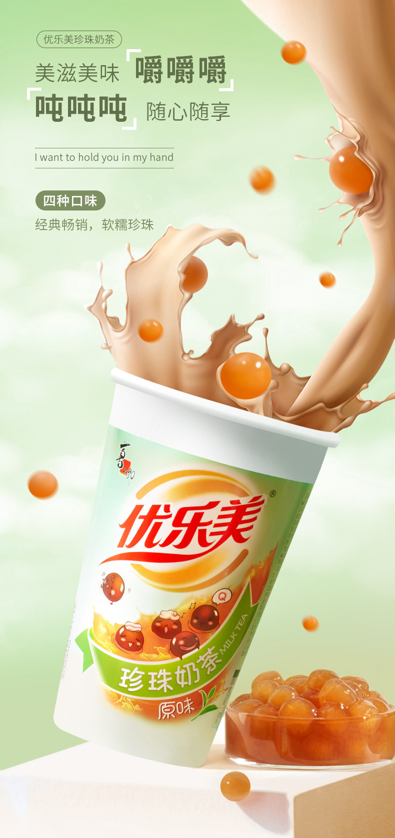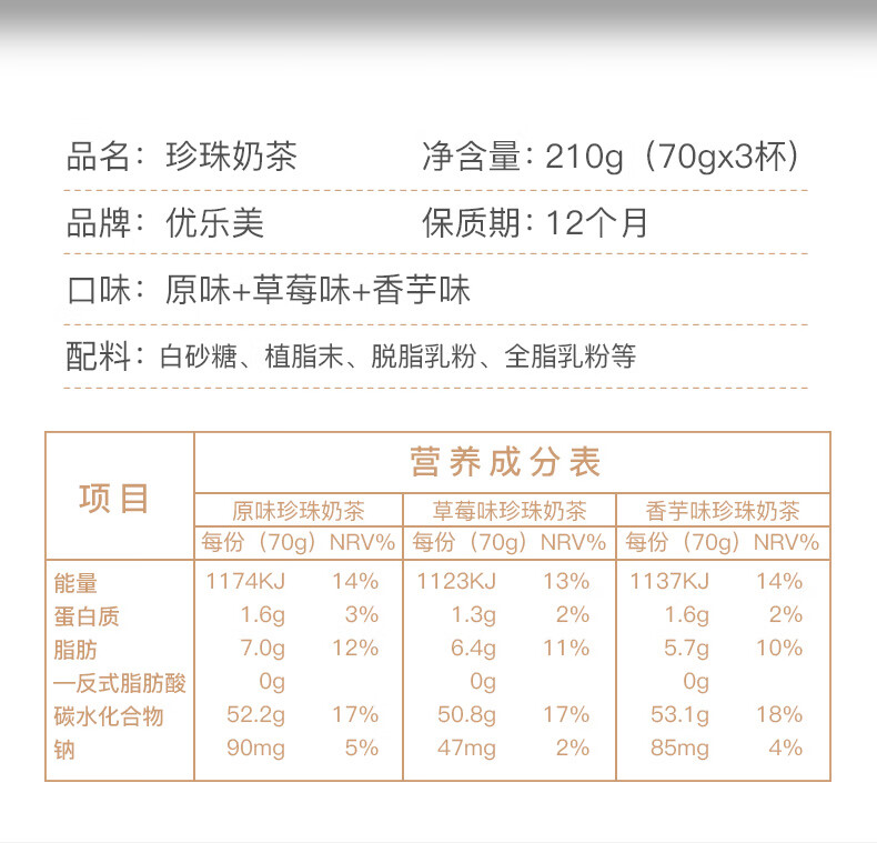 优乐美珍珠奶茶70g*3杯装原味/草莓/香芋味 早餐代餐下午茶速溶冲调饮料