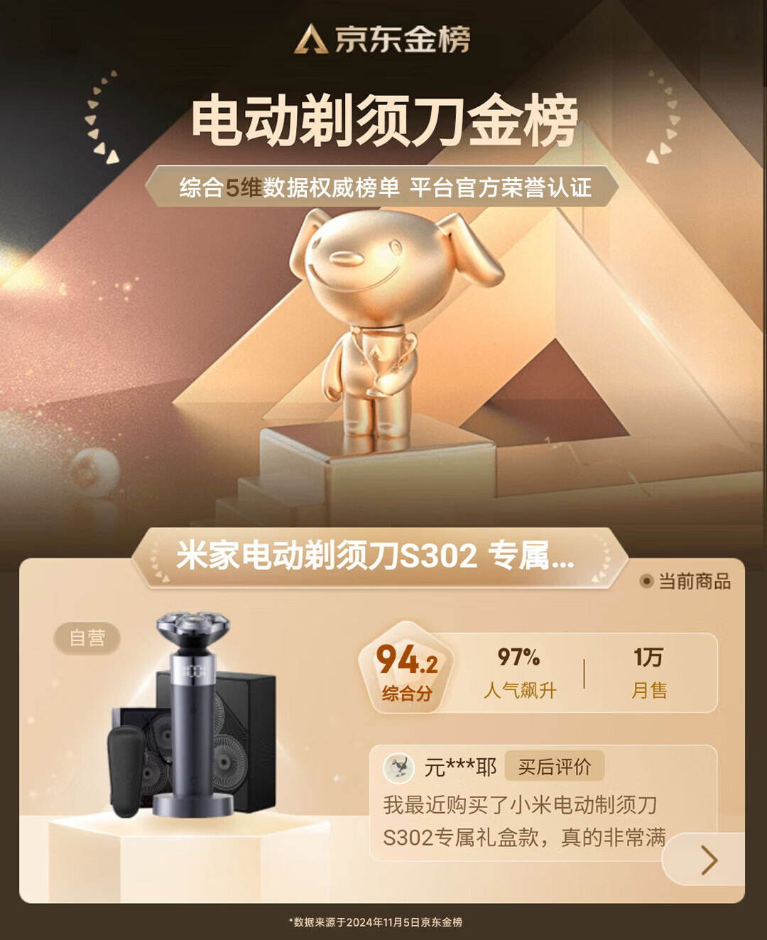 米家电动剃须刀S302专属礼盒小米旋转式刮胡刀 双环弧面刀网 浮动贴面剃须 送男友情人节礼物推荐