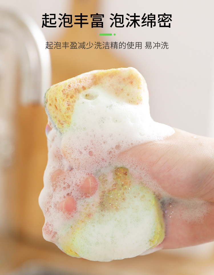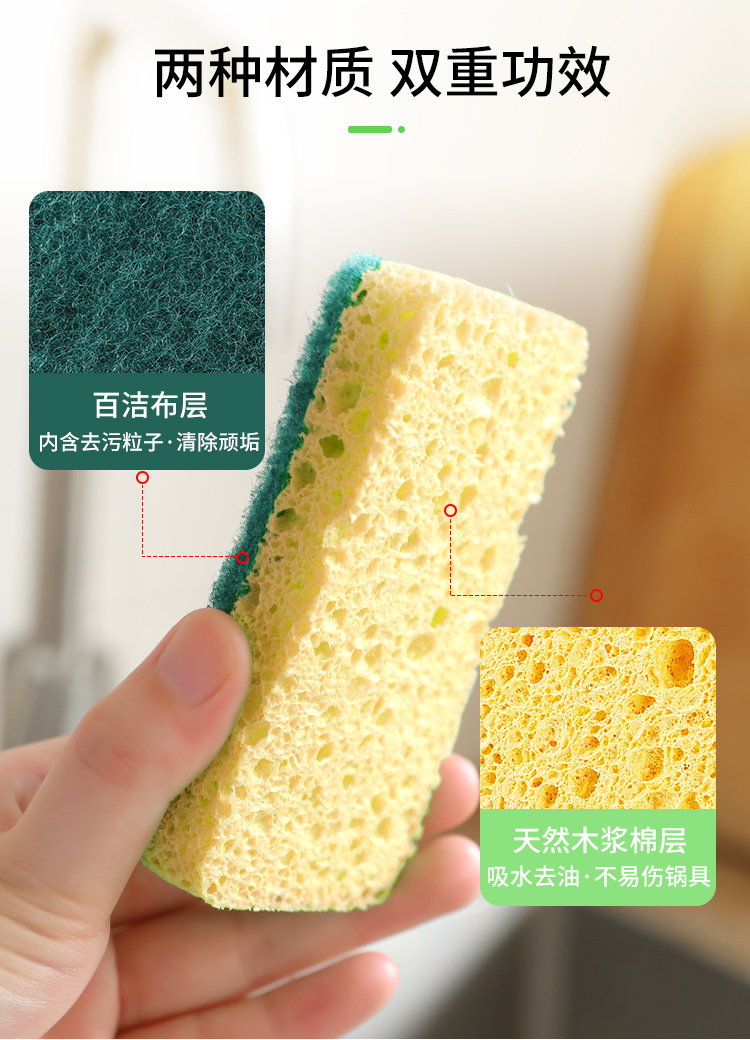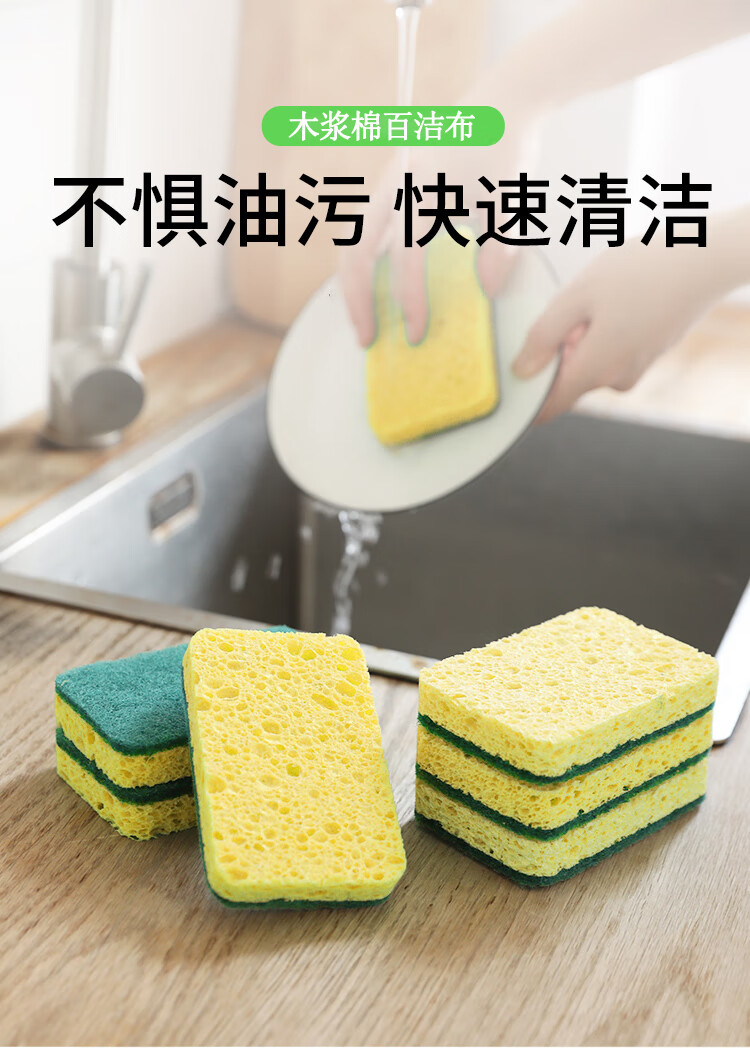 洁丽雅木浆棉百洁布11*7*2cm*5片装厨房抹布海绵擦双面强效去油污