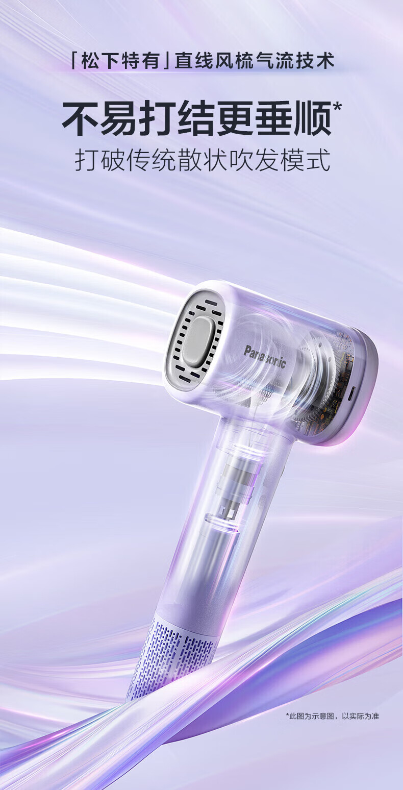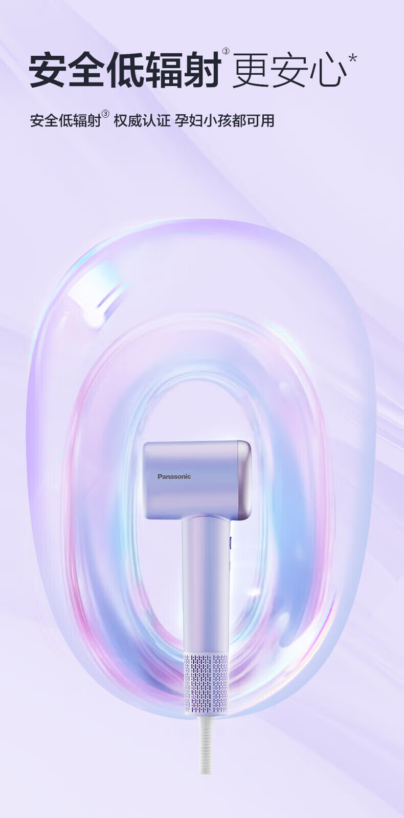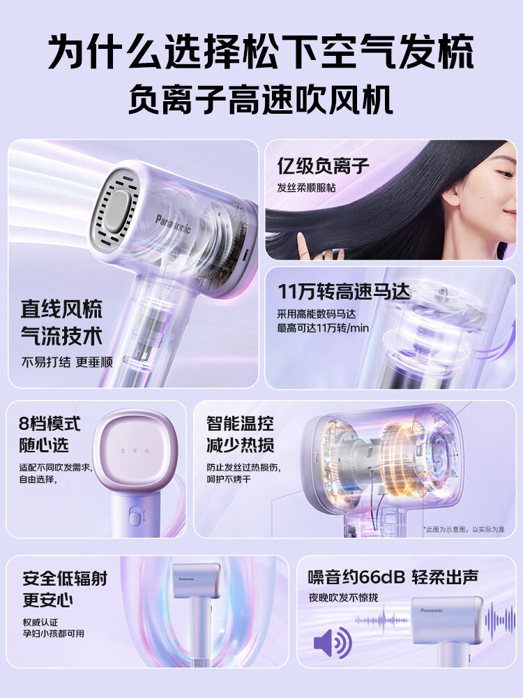 松下(Panasonic)空气发梳负离子高速护发吹风机家用低噪速干电吹风送女生新年情人节礼物年会奖品云雾紫EH-WNE6M