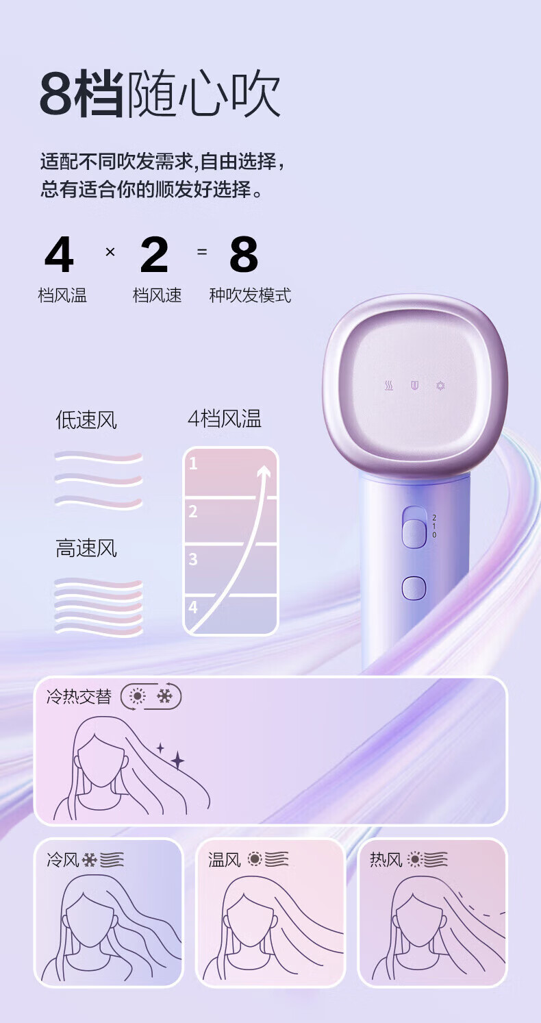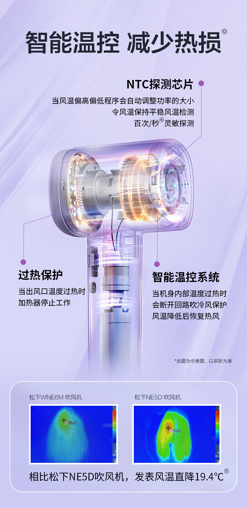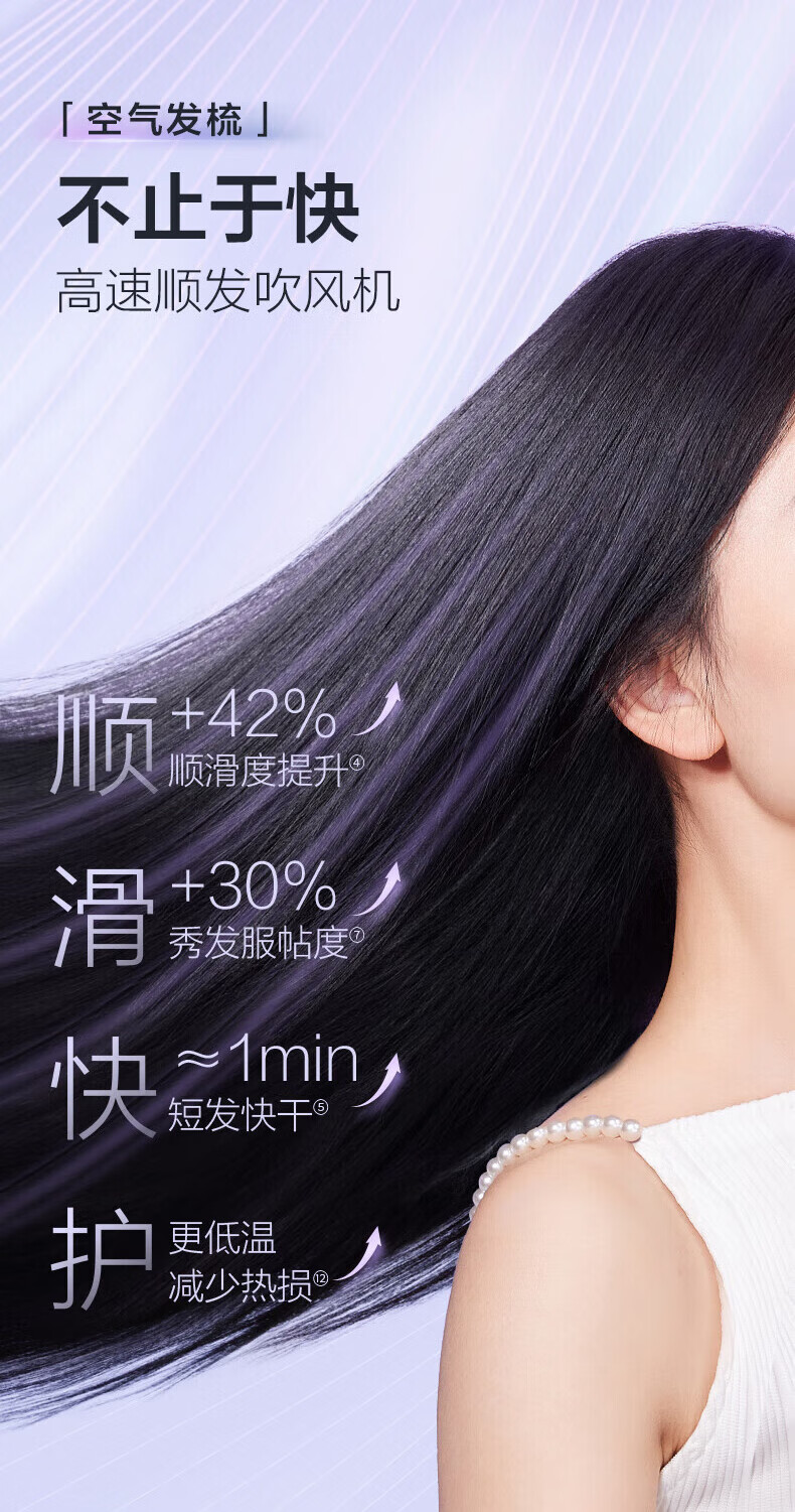 松下(Panasonic)空气发梳负离子高速护发吹风机家用低噪速干电吹风送女生新年情人节礼物年会奖品云雾紫EH-WNE6M