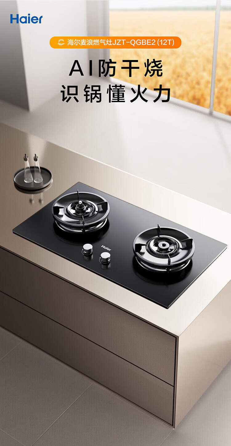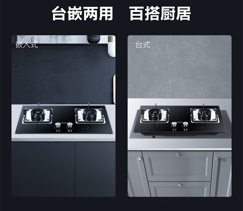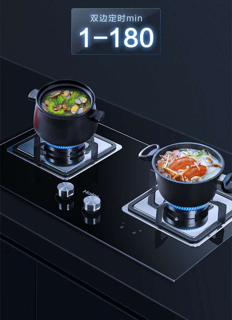 海尔(Haier)燃气灶猛火节能灶家用天然气煤气灶双灶台嵌两用液化气猛火灶具炉灶熄火保护定时以旧换新补贴 【双边定时】5.2KW猛火灶BE51 天然气