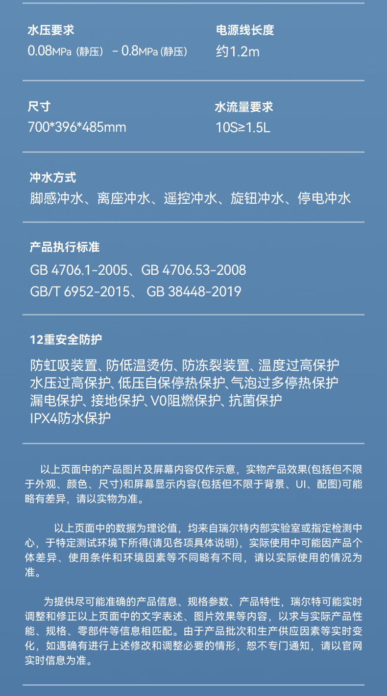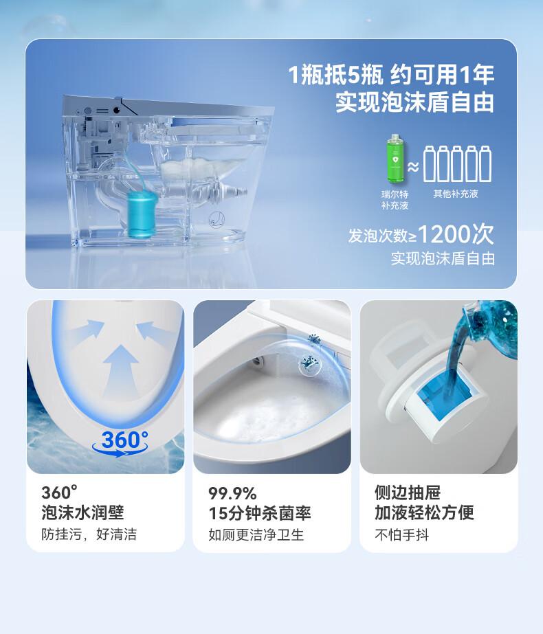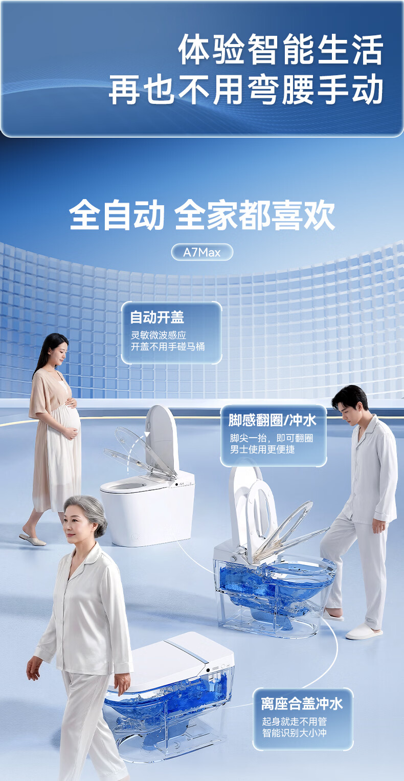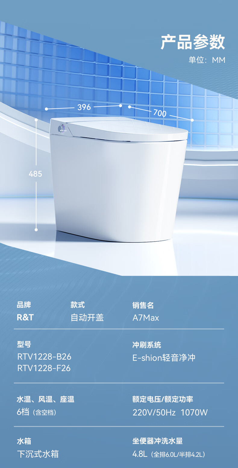 瑞尔特(R&T)智能马桶A7系列全自动翻盖一键智控轻音净冲千层出泡马桶坐便器 A7Max 400mm
